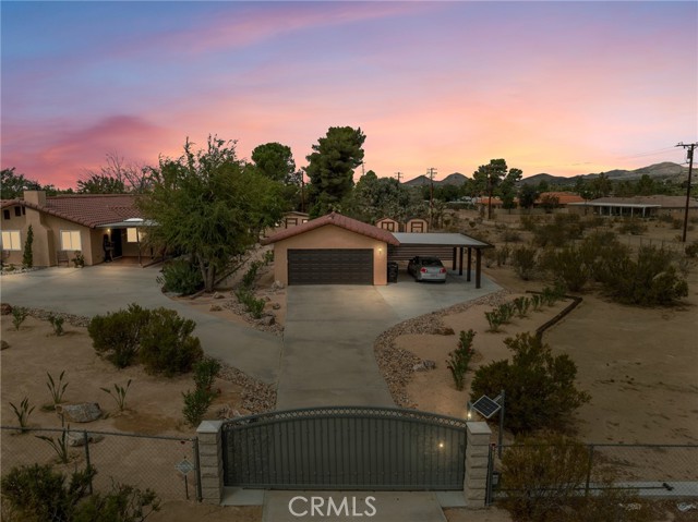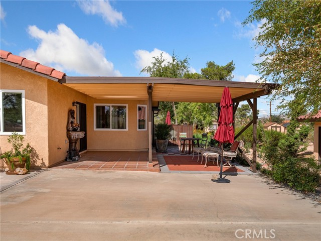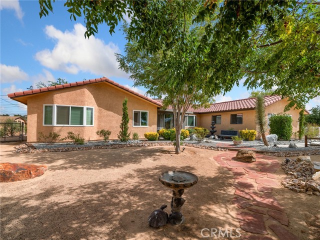 $20 K PRICE REDUCTION!!!This beautifully crafted mature and well-maintained custom home offers comfort, character and space in a highly desirable neighborhood. With 3 bedrooms and 3 full baths and a versatile bonus room, this home is perfect for anyone who values both charm and function. Step through the custom covered entry into a welcoming double-door foyer that opens to a formal living room and dining room. A cozy family room with a real brick fireplace and wet bar sets the stage for gatherings. The kitchen features granite counters, abundant storage and a sunny breakfast nook with a slider leading to a screened in porch ideal for hosting guests or simply relaxing in a cozy atmosphere. A huge bonus room offers endless options, a fourth bedroom, office, craft room or whatever you dream up with a full bath conveniently nearby. The primary suite includes a private patio access with stylish astroturf, shaded umbrellas and plenty of safe space for your 4-legged friends. Outdoor living shines here with multiple patios: one off the family room and kitchen for morning coffee or evening libations. The property also includes a detached two-car garage with attached carport, 3 sheds for extra storage and 2 solar powered gates for ease and security. Recently the grounds were professionally landscaped with low maintenance desert plants and rock creating stunning curb appeal. All this in a prime location just off Hwy 18 close to all services. Don't miss out on this one-of-a-kind home. For full list of recent upgrades see attachment. Seller is willing to include all furnishings in sale!