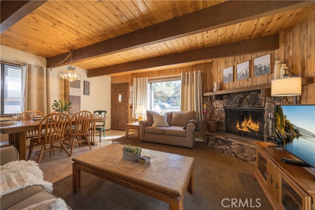 Ideally located near the Big Bear Zoo, Bear Mountain Golf Course and Ski Resort, and the vibrant new Moonridge corridor with dining options, this 3-bedroom, 2-bath modified a-frame cabin blends convenience with classic mountain appeal. Two bedrooms feature ensuite baths for comfort and privacy, while the living room offers an efficient and cozy layout centered around a wood-burning brick fireplace that enhances the warm, cabin-style atmosphere. With its inviting design and prime location, this property is well-suited as a full-time residence, vacation retreat, or rental opportunity.