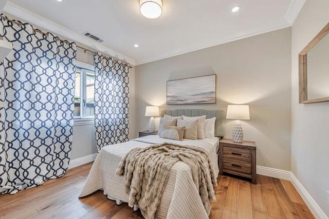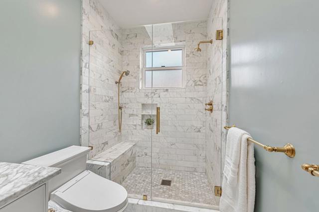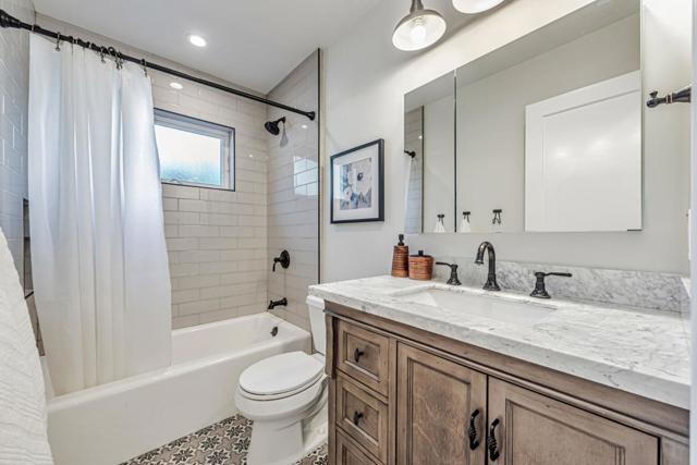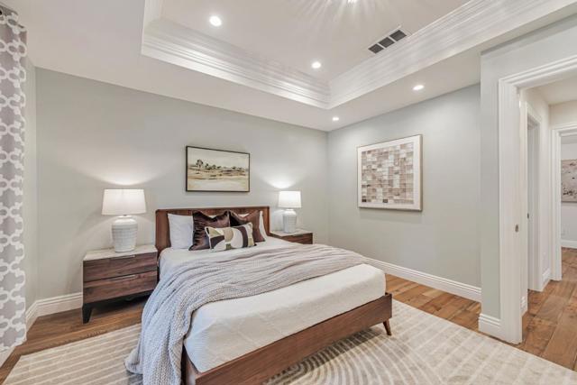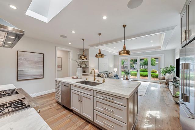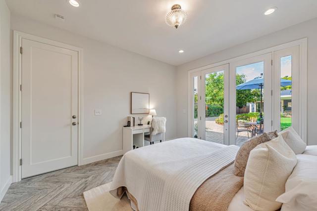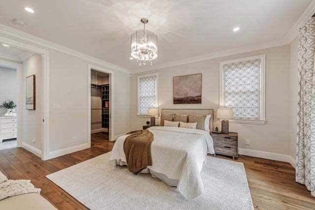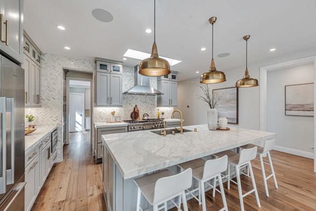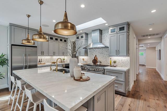 Beautiful surprise when you walk inside, a true MUST SEE single level home all remodeled in 2019. It offers 5 bedrooms 3.5 baths in the main house and another bedroom (or office) and full bathroom next to the garage in the casita at the back of the expansive lot. The chefs kitchen has a 5 by 9 center island with Calcutta Marble with breakfast bar seating for 4 and large sink. There is a 6 burner gas range, large skylight, butlers pantry and tons of storage. The floors are 5 inch wire brushed oak finished in a warm medium walnut tone. The perfect layout affords room for an office, guests and entertaining. Owned solar, LED lighting, central A/C and newer roof. The large primary suite in the back of the house opens to the pergola complete with Epay wood decking and a view of the expansive private yard. Pavers run from the front to the detached garage in the back making changes to the driveway easy. There is even a chicken coop in the corner for your fresh eggs! Beautiful must see home close to freeways, schools, parks and shopping.