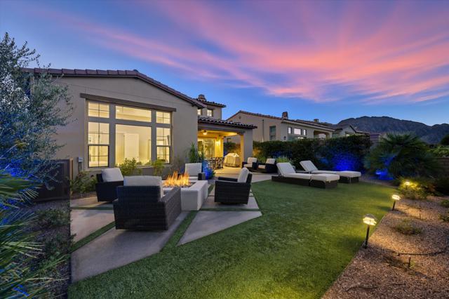 Experience refined desert living at this exceptional home located on the world-renowned Stadium Course at PGA West. Just steps from the clubhouse, this residence provides unmatched proximity to the excitement of the annual American Express PGA Tour, while also offering an intimate escape of privacy and comfort.The outdoor setting is designed for both relaxation and entertaining, featuring a built-in fire pit with seating, all framed by dramatic mountain vistas and colorful desert sunsets. It's a seamless blend of sophistication and resort-style leisure.Inside, the home offers 4 bedrooms and 4.5 bathrooms, thoughtfully designed with generous proportions. The gourmet kitchen stands at the heart of the residence, showcasing an expansive island, striking dark cabinetry, premium appliances, and tasteful finishes that elevate everyday living. With newer construction, the property benefits from well-maintained systems--including HVAC, pool equipment, and appliances--ensuring comfort and efficiency. Modern tile plank floors, substantial baseboards, and a versatile two-level layout complete the interior.Set within a highly desirable enclave of PGA West, this home merges prestige, comfort, and timeless style. Furnished per inventory.