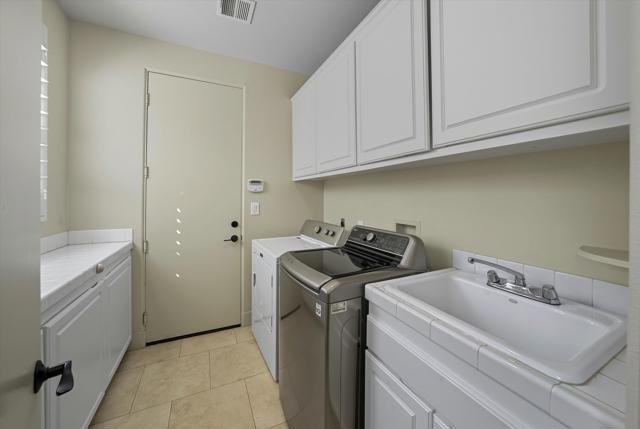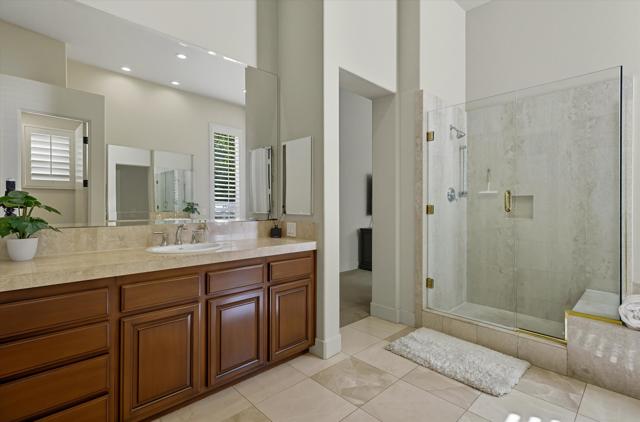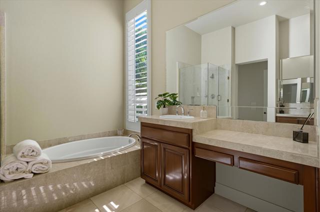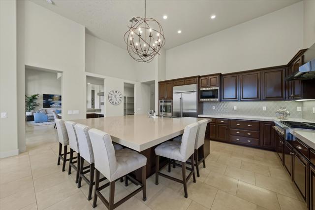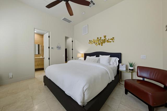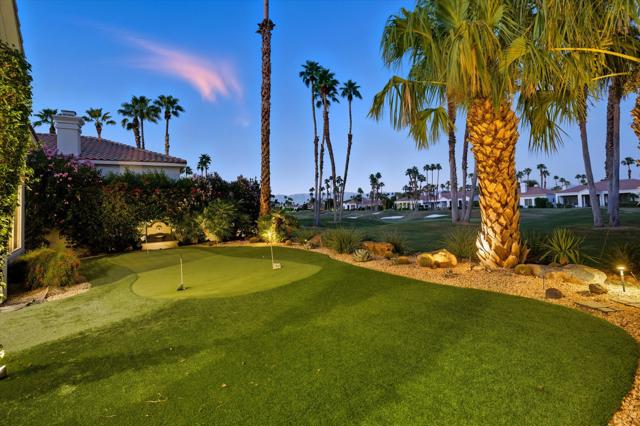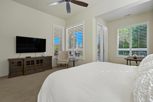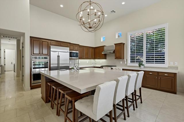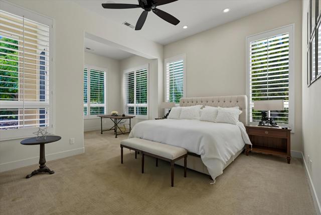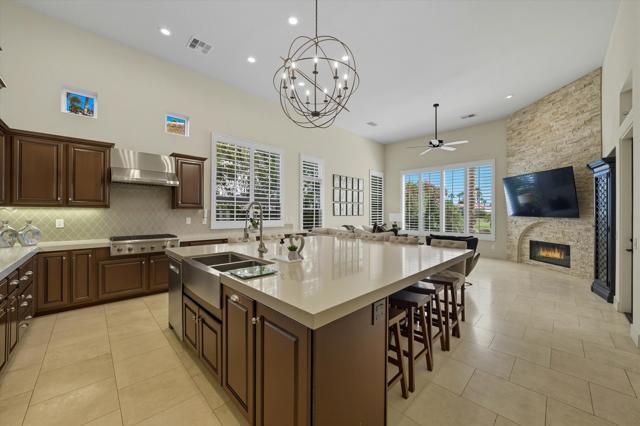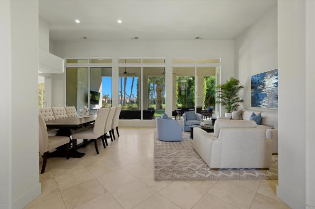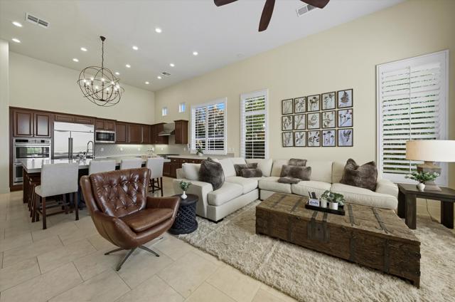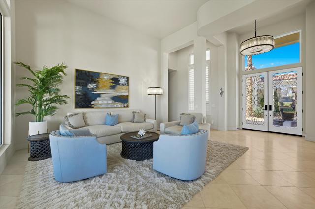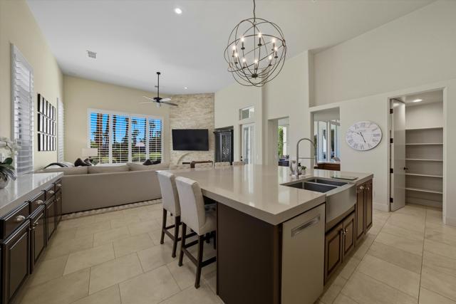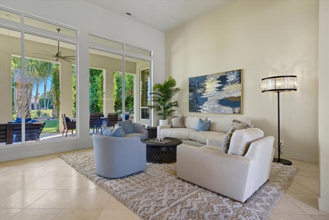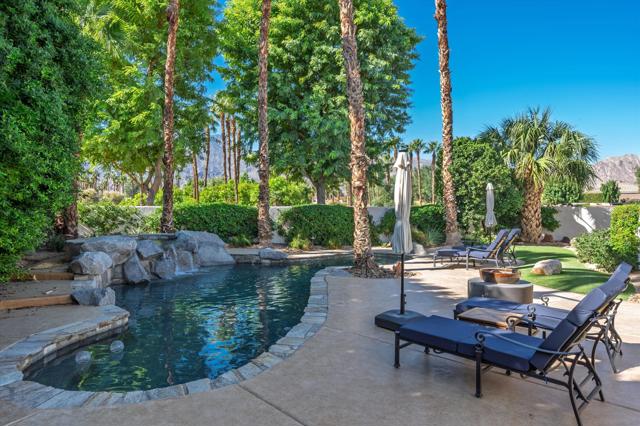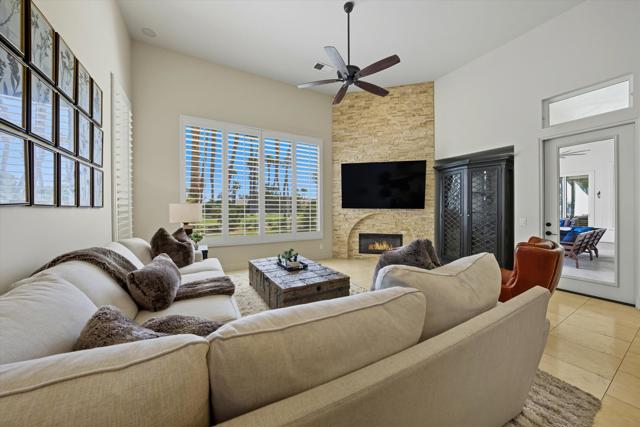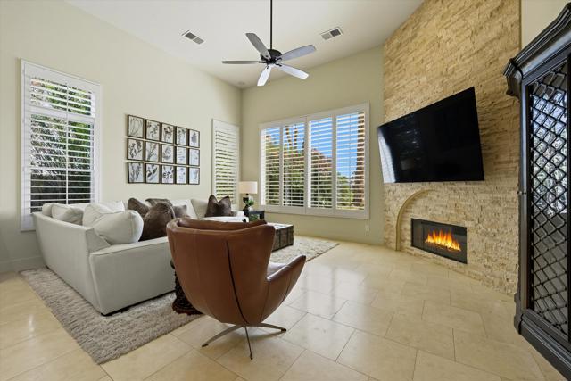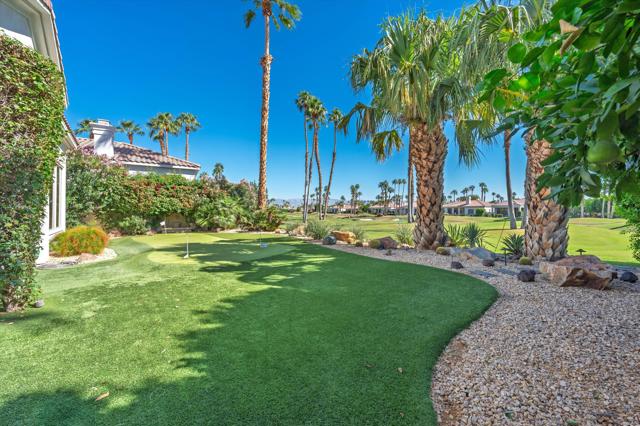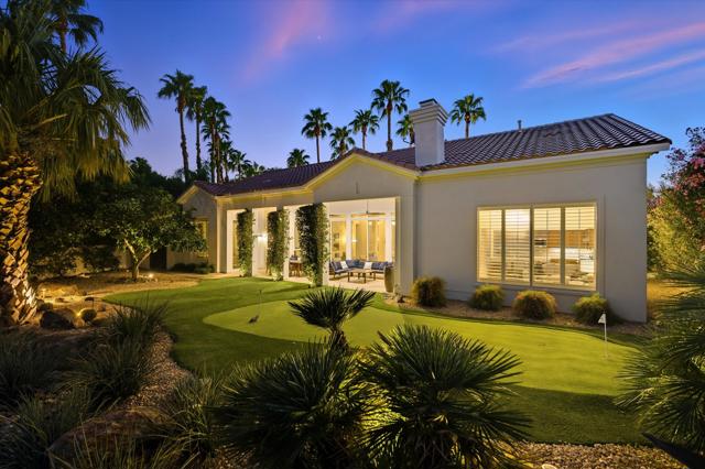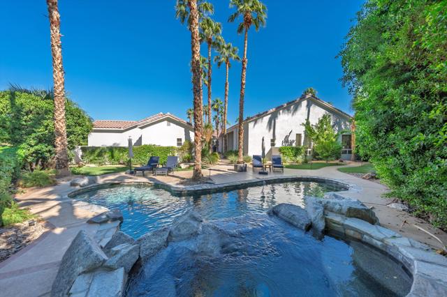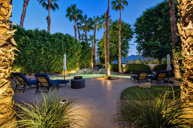 This beautifully reimagined residence sits on a .47-acre estate lot overlooking the 16th hole of the Nicklaus Tournament Course at PGA West. Blending modern sophistication with resort-style living, the home offers 4 bedrooms and 4.5 bathrooms, including 3.5 recently remodeled baths with fine finishes, plus a detached private casita with its own full bath, ideal for guests.The gourmet kitchen features stainless steel appliances, Pental quartz countertops, a dramatic 8' x 8' island with seating for 10, Ann Sacks designer tile, and refinished custom cabinetry. Additional highlights include a wet bar, stacked-stone fireplace, custom built-ins, updated ceiling fans, LED lighting, and a finished epoxy garage. The fourth bedroom, originally designed as an office, has a full bath and can easily serve as additional sleeping quarters.Outdoors, the property is surrounded by lush landscaping with 28 mature palm trees, abundant plantings, and three fruit trees--tangelo, lemon, and grapefruit. The side yard showcases a pebble tech pool and spa with south-facing views of the mountains, while the back yard offers a putting green overlooking the fairway. Two main HVAC units have been replaced within the last three years, ensuring comfort and efficiency. Offered furnished per inventory, this is a one-of-a-kind property that must be experienced in person.