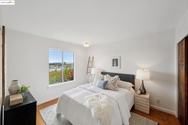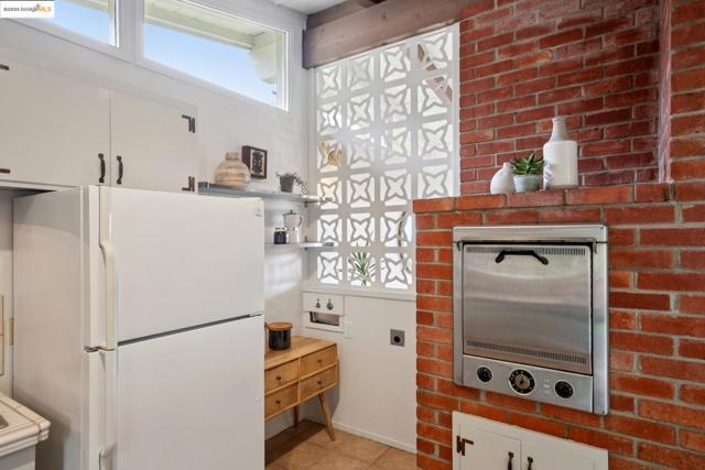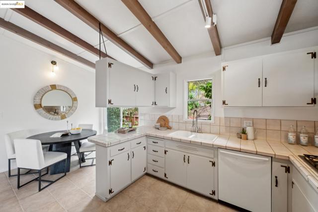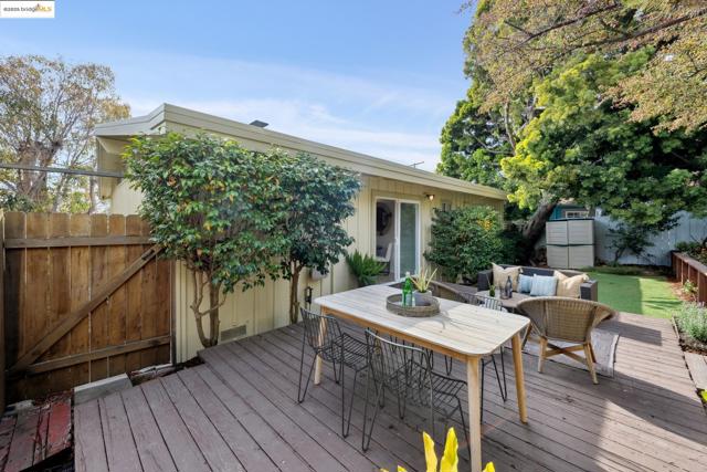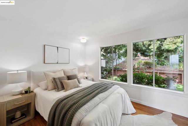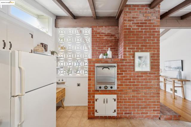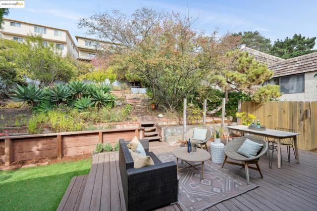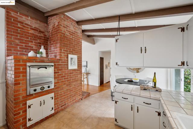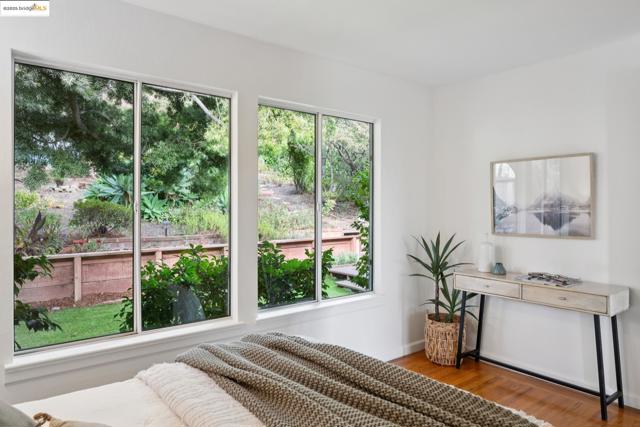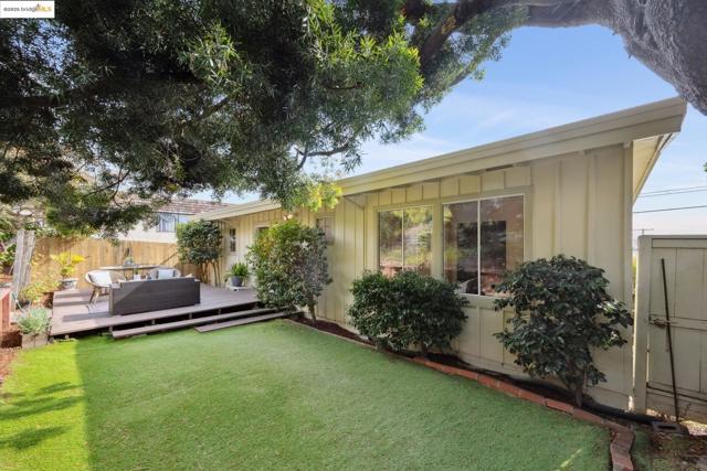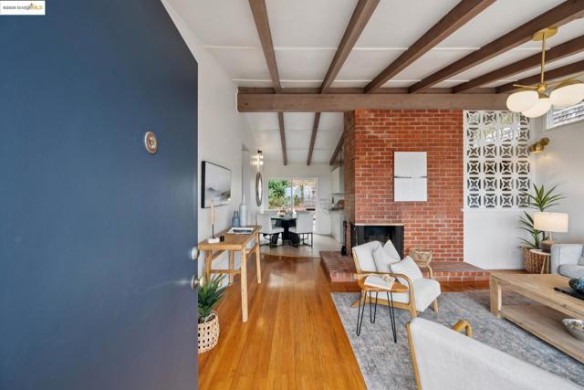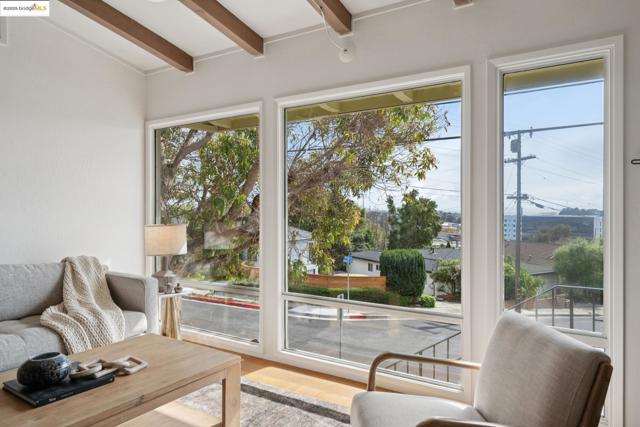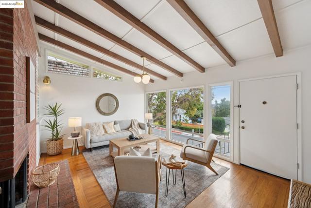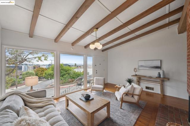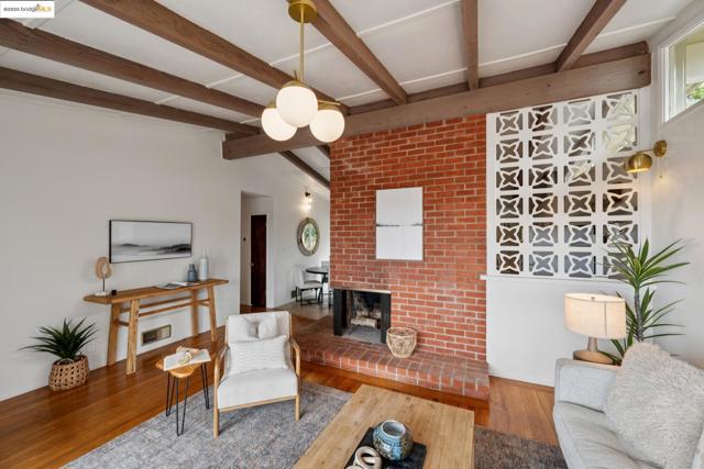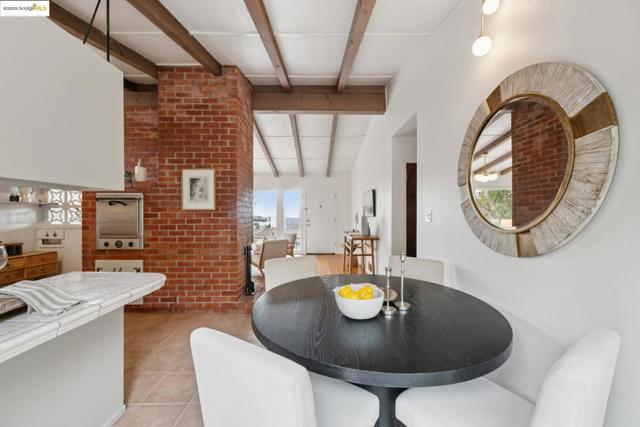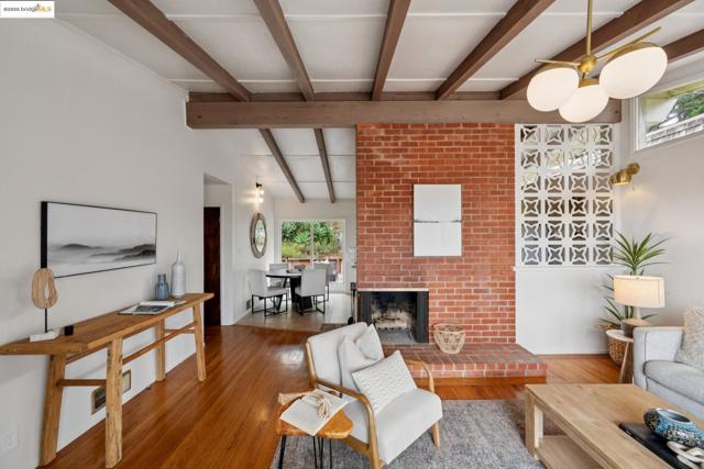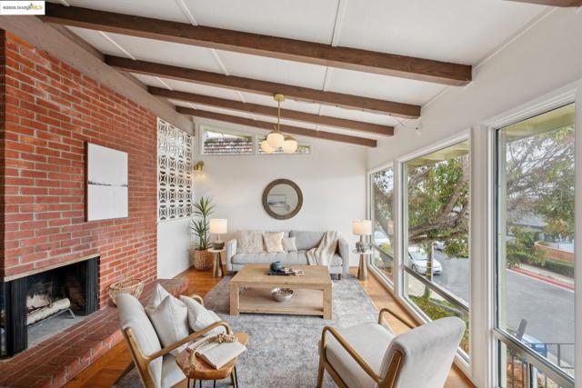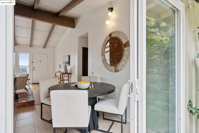 With plenty of vintage flair and modern charm, this El Cerrito Mid-century Modern gem is ideally situated just a few short blocks from BART's El Cerrito Del Norte station. The single-level layout offers seamless indoor-outdoor living, with a spacious backyard featuring a deck and terraced gardens—perfect for entertaining or simply unwinding. Inside, vaulted ceilings and oversized windows create an open, airy atmosphere, with plenty of natural light filling the common living areas. The home also offers captivating bay views, including glimpses of the Bay Bridge and San Francisco skyline. Practical and updated, the property includes a large two-car attached garage with ample storage, a new furnace, and a new roof installed just last year. The sewer lateral is also compliant and a new 200 amp electrical panel is pending installation. Experience what locals already know - living in El Cerrito offers the perfect blend of suburban tranquility and urban convenience. Enjoy a thriving local food scene, with unique eateries and cafes, as well as easy access to hiking and biking trails in the nearby hills.