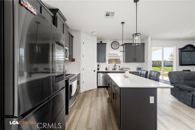 Luxury Living in Sterling Manor. Better than new! This 4 bed + loft + study, 2.5 bath, home in high-demand 93313 features over $100K in premium upgrades and paid solar included. Designer finishes include shaker cabinetry, quartz countertops & backsplash, walk-in pantry, large island with pendant lighting, and Whirlpool stainless appliances. Primary suite downstairs with dual vanities & walk-in closet. Finished front & backyard, 3-car garage, loft, and energy-efficient features. Conveniently located near top schools, shopping, dining, parks, and major freeways — truly a turn-key, luxurious home!