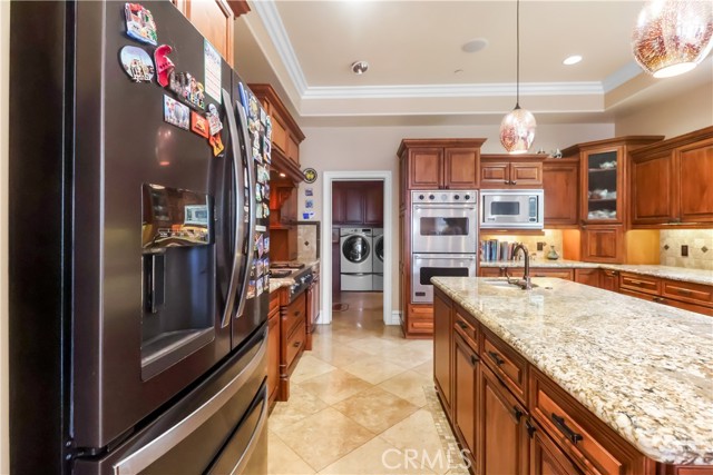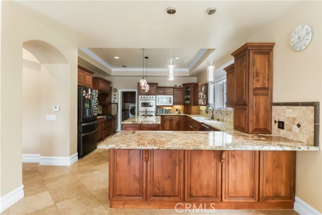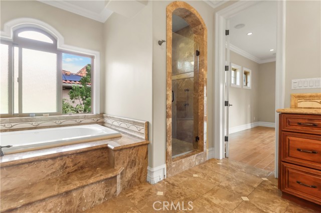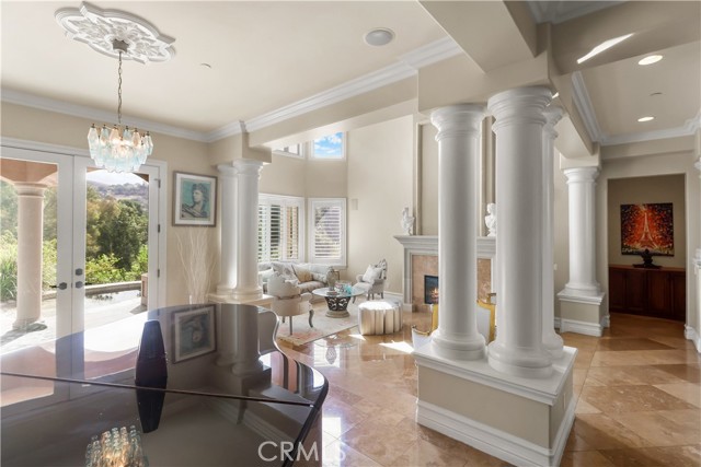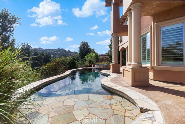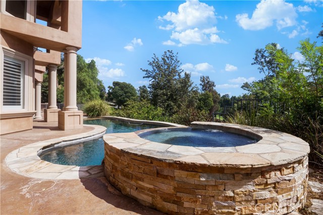 Welcome to 16127 Greens Ct., Chino Hills Ca 91709- a breathtaking custom- built estate nestled near the prestigious Western Hills Golf Course. This luxurious residence offers 5 bedrooms and 5.5 bathrooms and spans 4,711 sq ft of refined living space on a generous 16,000 sq ft lot. Built in 2008, the home showcases exceptional craftmanship and elegant design throughout. Step inside to discover an open floor plan with dramatic high ceilings, marble and hardwood floors, exquisite stone and granite finishes. The interior is adorned with numerous architectural details including custom columns, crown and baseboard molding, and custom cabinetry. Enjoy the seamless flow between the indoor and outdoor living with multiple French Doors and two balconies overlooking the golf course. The estate features a spacious gourmet kitchen equipped with top of the line appliances, custom cabinets, a double oven, chef's stove, marble counter tops, a large island, breakfast nook, pantry and wine cellar/ storage area. The master suite is a serene retreat with a fireplace , golf course views, a soaking jet tub, dual vanities, a walk-in closet, and a separate shower. Custom Plantation shutters thru out. Additional highlights include: * Mother-in-law quarters/guest/maid quarters. * Three custom fireplaces ( master bedroom, formal dining room, family room. * Professionally landscape grounds with mature fruit tress and plants. *Three car garage with built-in storage cabinets. * Custom outdoor barbeque area. * Heated salt water pool and spa with jets and golf course views. * Individual Office / Study room with built-in custom cabinets and shelves. * All bedrooms have their own private bathrooms. This meticulously designed estate offers a rare blend of luxury, comfort, and timeless elegance- perfect for those seeking an extraordinary lifestyle in Chino Hills!