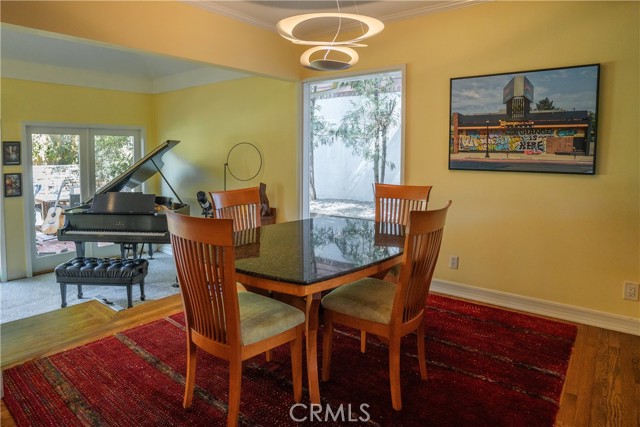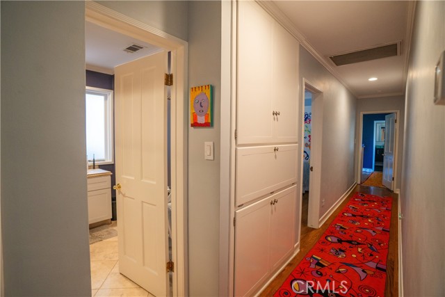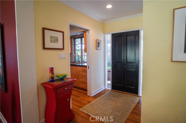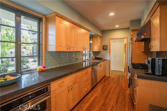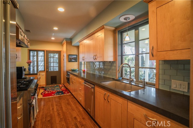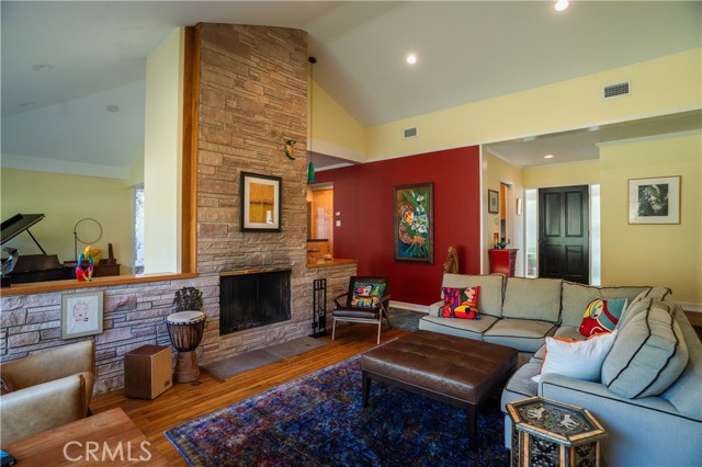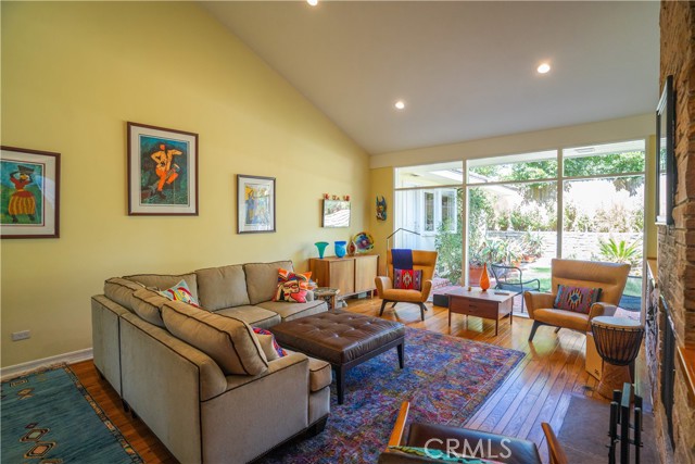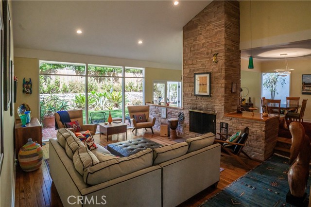 Idyllic Valmonte Grove Retreat. Tucked away on one of the most sought-after streets in the coveted Valmonte Grove neighborhood, this single-level sanctuary blends mid-century charm with modern comfort—all set directly along the serene boundary trail. Nestled behind a lush grove of eucalyptus trees on a generous 7,500 sq. ft. lot, this home feels worlds away while remaining close to everything. Step inside to a sun-drenched, sunken living room, where hardwood floors, soaring vaulted ceilings, and a wood burning stone fireplace create a warm, inviting centerpiece. Floor-to-ceiling windows frame views of the private, fully fenced backyard and garden, making the space perfect for both quiet mornings and lively entertaining. The open-concept dining room and spacious kitchen flow naturally off the living room, offering hillside and golf course views. The chef’s kitchen, fully remodeled in 2017, boasts a 6-burner Viking range, high-end appliances, custom maple cabinetry, and abundant storage. A step-down den (ideal for a music room, playroom, or cozy lounge) opens through four large French doors into the tranquil backyard. The home’s three bedrooms extend along the west hall, culminating in a peaceful primary suite complete with a Dutch door opening onto the garden. The modernist bathroom, beautifully renovated in 2019, features a marble walk-in shower, glass countertop vanity, stained glass window, and an abundance of natural light. Additional features include: Attached 2-car garage with laundry Extended driveway for up to 3 additional cars New roof, on-demand hot water heater, whole-house water filter, and built-in dehumidifier Enjoy hillside and golf course views from the elevated front porch, or relax in the private backyard oasis—perfect for families, pets, and summer gatherings. This is more than a home; it’s a lifestyle. Valmonte Grove offers peaceful, tree-lined seclusion while being just minutes from Riviera Village and a quick 4-minute bike ride to the beach.