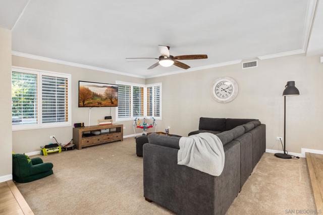 Assumable Financing Available. Welcome to this warm and inviting ranch-style home in San Diego Country Estates. Filled with natural light, this thoughtfully designed floor plan offers 4 bedrooms and 3 bathrooms on a spacious 0.44-acre corner lot. Interior highlights include durable LVP flooring, plantation shutters, crown molding, and a beautifully appointed kitchen with stainless steel appliances, granite countertops, and a breakfast bar that opens to the family room with vaulted ceilings and a cozy fireplace. The private primary suite features exterior patio access, a walk-in closet, and its own en-suite bathroom, while the remaining bedrooms are thoughtfully located on the opposite side of the home for privacy. Step outside to enjoy multiple outdoor spaces, including a gated front porch and a private patio off the primary suite. The property also offers abundant parking with space for an RV or boat, plus energy-efficient solar. San Diego Country Estates provides resort-style living with 2 equestrian centers, 2 pools and spas, an 18-hole golf course with restaurants and a pro shop, lighted tennis courts, and miles of hiking, biking, and riding trails. A perfect blend of comfort, functionality, and lifestyle awaits!