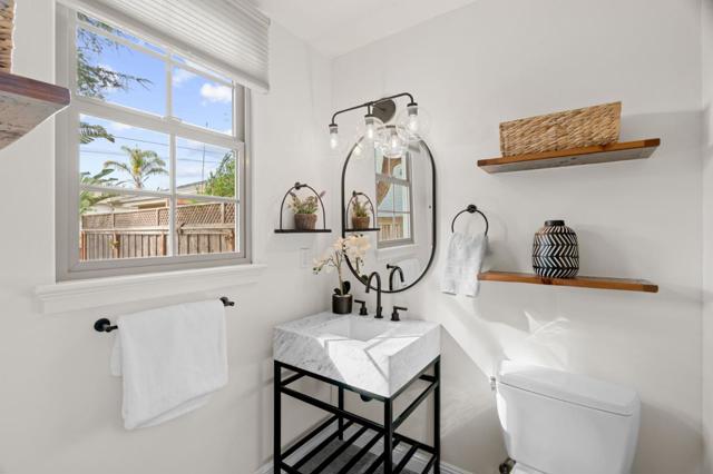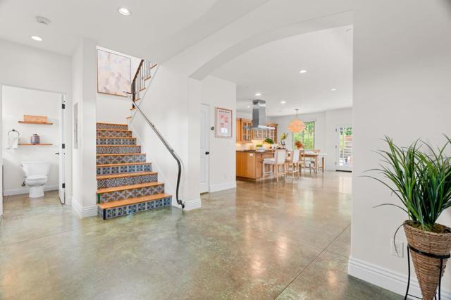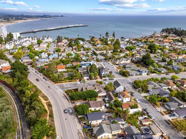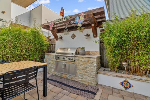 Mediterranean elegance in Santa Cruz's desirable lower Westside. Discover refined coastal living just two blocks from West Cliff Drive. This stunning residence combines modern luxury with quintessential Santa Cruz charm. A majestic Heritage Cedar welcomes you to this gated property featuring a beautifully landscaped front yard. Inside, natural light floods the open floor plan, creating seamless flow between living, dining, and kitchen areas perfect for entertaining or everyday life. The chef's kitchen showcases solid bamboo cabinets, top-of-the-line Thermador stainless steel appliances, built-in microwave drawer, granite counters, pantry, and breakfast bar island. Cozy up by the fireplace while hydronic heated floors provide year-round comfort. Upstairs, the master suite offers a private retreat with walk-in closet, plus two well-proportioned bedrooms and additional bathroom. Outside, enjoy the backyard fire pit and outdoor shower, the ultimate Santa Cruz touch for post-beach or surf sessions. One-car garage plus driveway parking and electric hook-up. Moments from West Cliff's dramatic coastline, and downtown's vibrant scene.