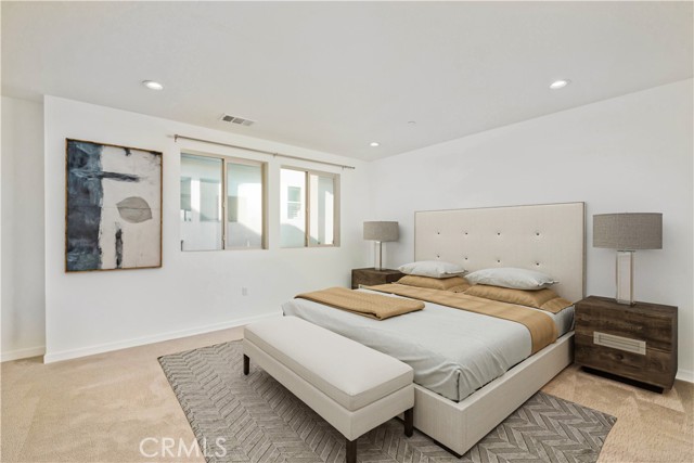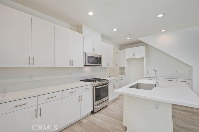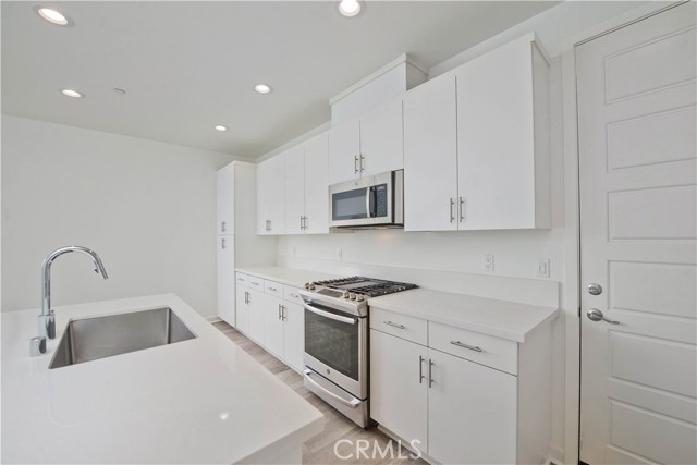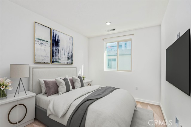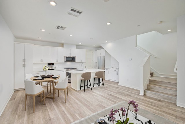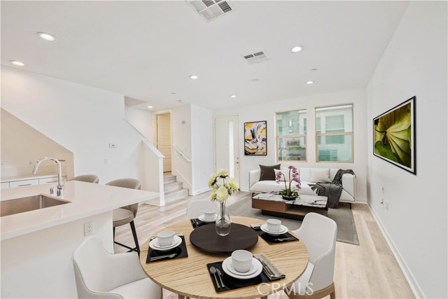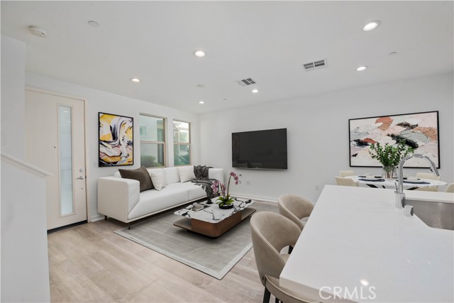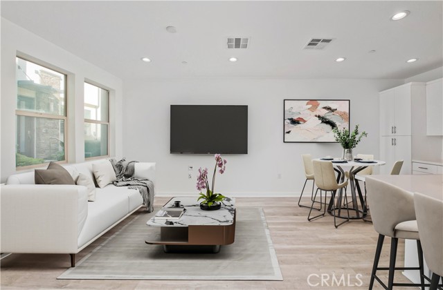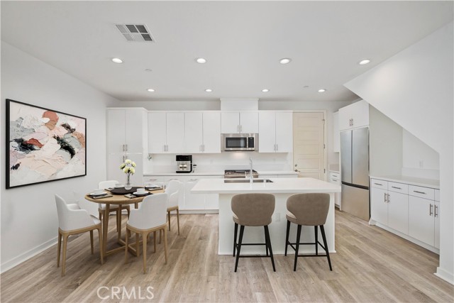 Call listing agent - Sevan Petrossian (818) 521-7309 for access to the entry gate off of Prairie Street and Pearl Lane for open house this weekend October 4th and 5th from 1-4 pm. Welcome to this gorgeous 2-story townhome in The District, one of Northridge’s most desirable gated communities. Built in 2018, this thoughtfully designed residence offers 1,415 square feet of modern living space with no one above or below you. The main level is light-filled and open-concept, seamlessly integrating the kitchen, dining, and living areas into one inviting space perfect for entertaining and everyday living. The kitchen features a large center island, crisp white cabinetry with a built-in coffee/bar station, quartz countertops, stainless steel appliances, and a cozy breakfast nook area. For added convenience, a stylish powder room is also located on the main level. Upstairs, you’ll find a spacious primary suite with a walk-in closet and ensuite bath complete with dual sink vanity, private toilet room, and a step-in shower with a sitting bench. Two additional bedrooms share a hallway bathroom with a shower-tub combination, while the laundry area with washer and dryer hookup is conveniently located on the same level. Additional highlights include a direct-access two-car garage, high ceilings throughout, and a tankless water heater. The District offers resort-style amenities including a sparkling pool and spa, cabanas with outdoor showers, a beautifully designed clubhouse with open-air great rooms, TV lounges, a bar, outdoor kitchen and dining areas, multiple fireplaces, a firepit, BBQ stations, dog park, and lush landscaped lawns. Ideally located in the heart of Northridge, this community is within walking distance of Northridge Fashion Center, Target, Trader Joe’s, and numerous restaurants, movie theaters, and fitness centers. It is also just minutes away from Porto’s Bakery and California State University Northridge (CSUN). Don’t miss this rare opportunity to own something truly special in one of Northridge’s most sought-after communities—schedule your private showing today! Please note that no refrigerator, washer, or dryer are included in the sale (these are virtually staged in the images and video).