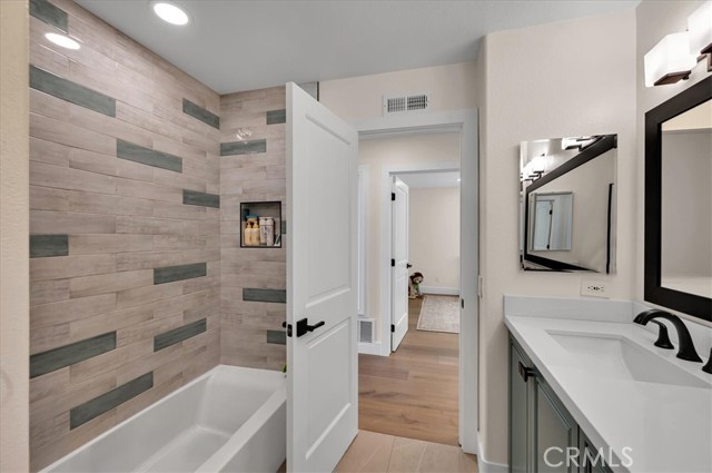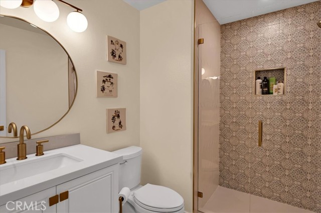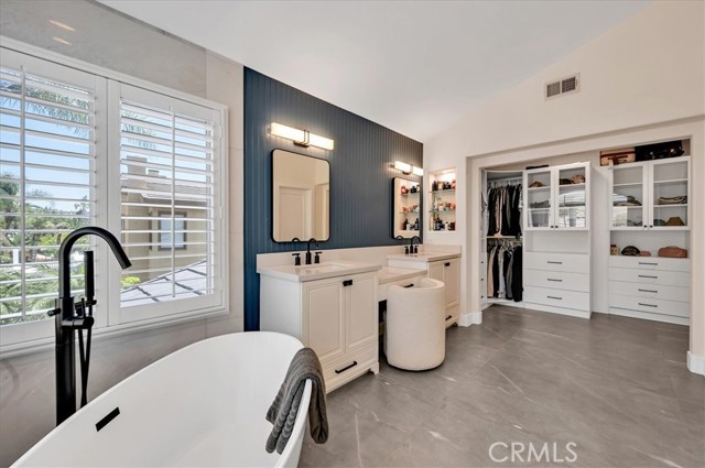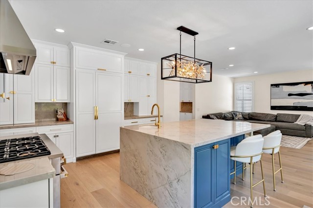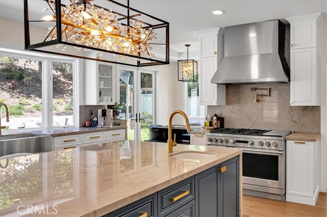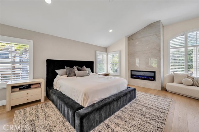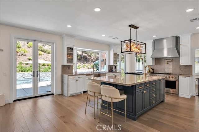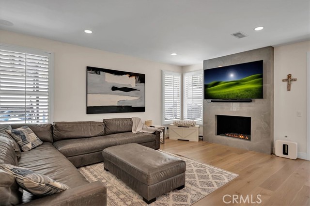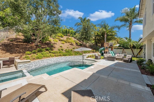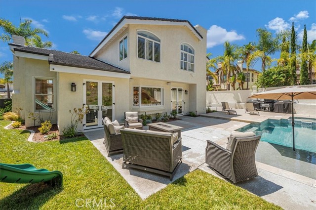 Welcome to this exceptional residence nestled within the prestigious 24-hour guard-gated community of Belsomet in Anaheim Hills. Set on a meticulously landscaped 10,200 sq ft lot, this elegant single-family home offers approximately 3,097 sq ft of refined living space, featuring four bedrooms including a versatile main-level room currently used as an office and three full bathrooms. A rare blend of privacy, comfort, and upscale living awaits. Extensively remodeled with high-end upgrades, the home showcases new hardwood flooring, solid wood interior doors, custom French doors, fresh designer paint, upgraded lighting, and wrought iron staircase. The re-imagined kitchen features custom cabinetry, quartzite countertops, and high end Monogram Appliances, while the bathrooms have been luxuriously updated with porcelain tile, custom finishes, and frameless glass enclosures. The primary suite is a tranquil retreat with a soaking tub, and walk-in shower, marble tile and custom closet. Additional upgrades include a recently replaced HVAC system with dual compressors and furnaces, new water heater, fully custom closets in all up stairs bedrooms, and three beautifully retiled fireplaces including an electric fireplace in the primary suite. The laundry room and garage have also been meticulously updated with premium finishes and thoughtful touches throughout. The exterior is equally impressive with fresh paint, new lighting, All New Tile Roof and All New Solar System. The resort-style backyard features a newly renovated Pebble Tec Pool with Baja Shelf, updated lighting, removable safety pool fence and ample space for outdoor entertaining. The grounds have been professionally landscaped with new grass, plants, and a modern sprinkler and drip system covering the hill, front, and side yards. Perfectly located near top-rated schools, shopping, dining, parks, and freeways, this turnkey home offers a rare opportunity to own in one of Anaheim Hills' most sought-after communities.
