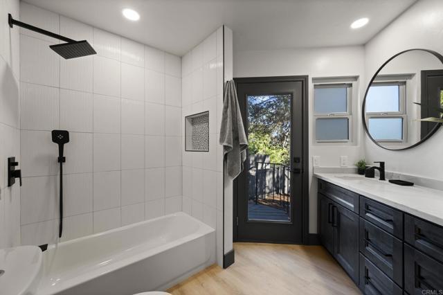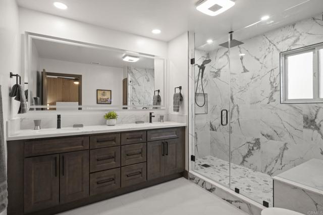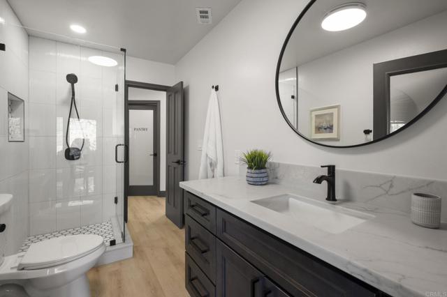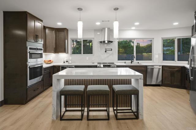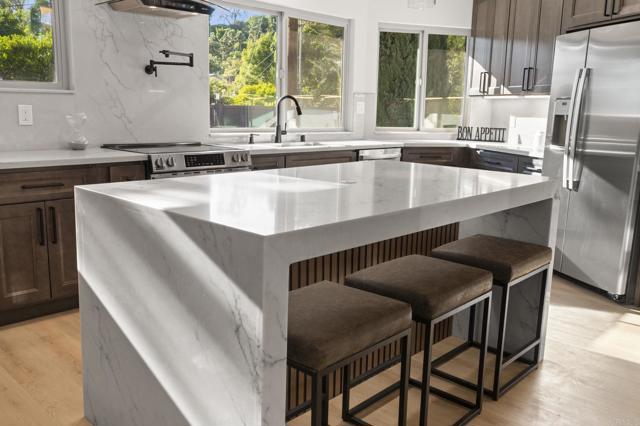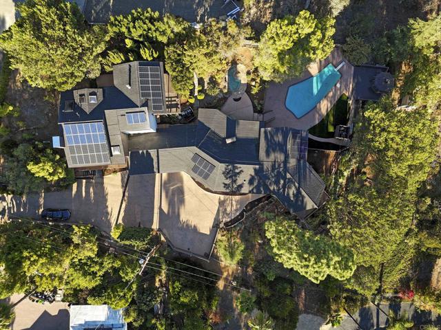 Discover the stunning charm of this completely remodeled Mount Helix estate, nestled on over an acre of meticulously landscaped grounds. This exceptional home features 6 spacious bedrooms and 4 modern bathrooms, perfect for multi-generational living or hosting gatherings. Experience luxury living with resort-style amenities, including a renovated pool and spa, a three-car garage, and two inviting fireplaces. Elegant details such as exquisite stained-glass windows, contemporary kitchen and bathrooms, and custom closets in every bedroom enhance the home's appeal, while the expansive walk-in pantry offers ample storage for all your needs. The main residence boasts over 2,900 square feet of living space, featuring 5 bedrooms and 3 bathrooms. In addition, the guest home provides a generous bedroom, bathroom, and a custom walk-in closet, encompassing an impressive 1,656 square feet. The Estate has 53 Paid Solar Panels making this a energy saving property. This remarkable property not only sprawls across more than an acre but also holds incredible potential for an accessory dwelling unit (ADU) or even a lot split for constructing a second home. With its own access to a side street below, this estate is ideally suited for extended family living or generating rental income. Seize this exceptional opportunity to own a truly unique and versatile property that embodies luxury and possibility.