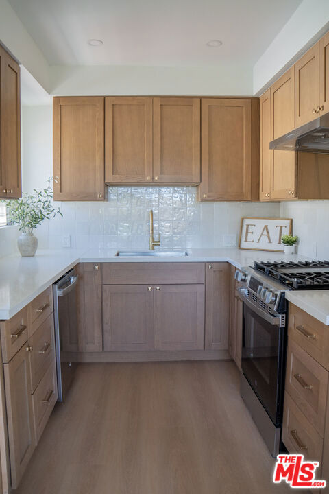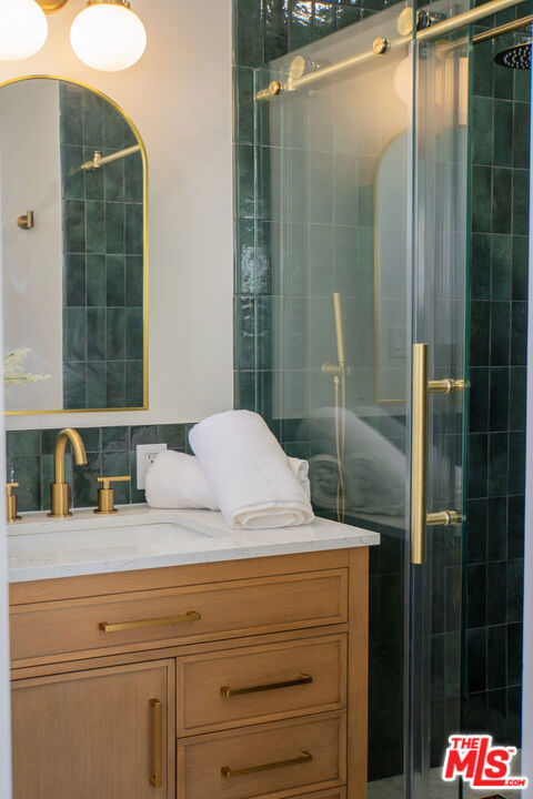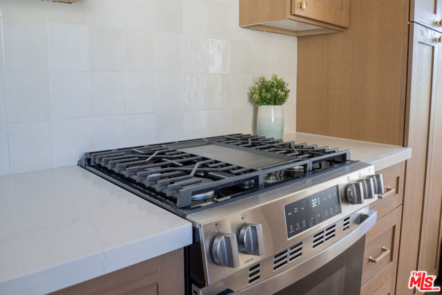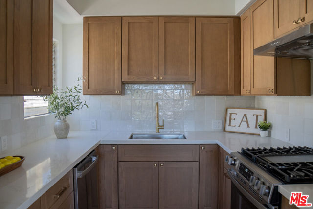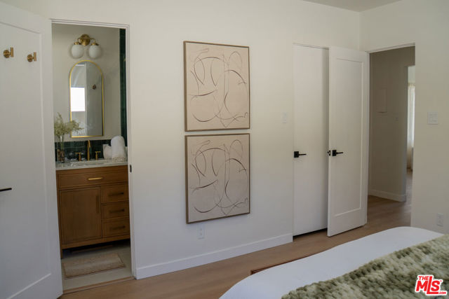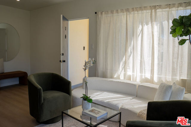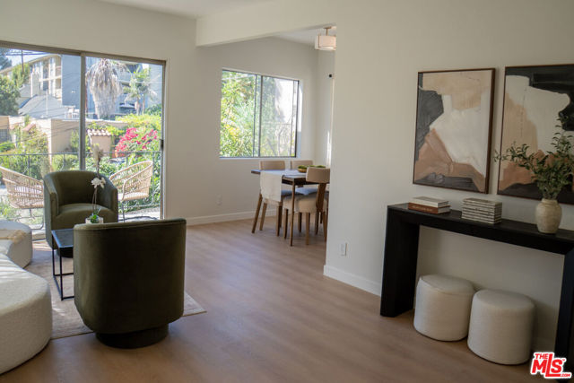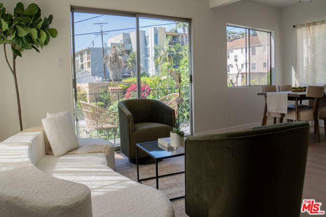 Spacious and updated Mid-Century condo in the heart of Los Feliz! This is a truly unique offering - a top-floor, end-unit condo in a quiet 1950's building, which has been completely restored and updated top-to-bottom with all new systems and designer finishes. The Ambrose sits on a peaceful street, lined with mature palm trees, perfectly situated within a desirable pocket of Los Feliz - between Hillhurst and Vermont. Tucked away to create calm, privacy and a connection with nature, yet close to all of the amazing amenities that make this neighborhood special! Originally built in 1959, the complex has been lovingly kept by the close-knit association, and retains that sought-after Mid-Century charm. Within this intimate complex, #8 stands out as an extraordinary unit. Sited on the top level and at the back with only one shared wall, the condo feels both airy and private, perched up away from the street. A complete retrofit and redesign has just been completed, with virtually no surface left untouched. Systems such as plumbing, electrical and drain lines have been replaced. Walls have been stripped to the studs and reinforced, with new high-rated insulation added. New flooring, drywall, paint and recessed lighting throughout give a comfortable and luxurious feel. A brand new, oversized kitchen is chef-ready with all new cabinetry, quartz counters, stainless appliances, custom lighting and ample storage. The kitchen opens to a dedicated dining room with huge windows and a sleek chandelier. The spacious living room has a flexible layout, space for a WFH setup, and sliding glass doors that open onto the private balcony. The center hall boasts ample storage, including space for an in-unit W/D combo. Off the hall, a full bath perfectly incorporates an original cast iron tub with new designer tile, vanity, lighting and fixtures. The large primary bedroom creates a perfect retreat with clerestory windows, walk-in closet, and a beautiful new en-suite bath with walk-in shower, frameless glass enclosure, and dramatic floor-to ceiling tile. Meanwhile, the second bedroom is perfect as a guest room, office or nursery, and also includes an oversized walk-in closet. Located mid-block on Ambrose Ave, the building's location gives an ideal blend of privacy and convenience. Close to Griffith Park, transit, freeways, as well as the countless cafes, shops and dining options in Los Feliz and the surrounding neighborhoods, the home is also convenient to studios and employment centers in nearby Hollywood. With a sensible floor plan, original charm, meticulous upgrades, and thoughtful finishes, this move-in ready condo strikes a perfect balance and sits ready for its next chapter!
