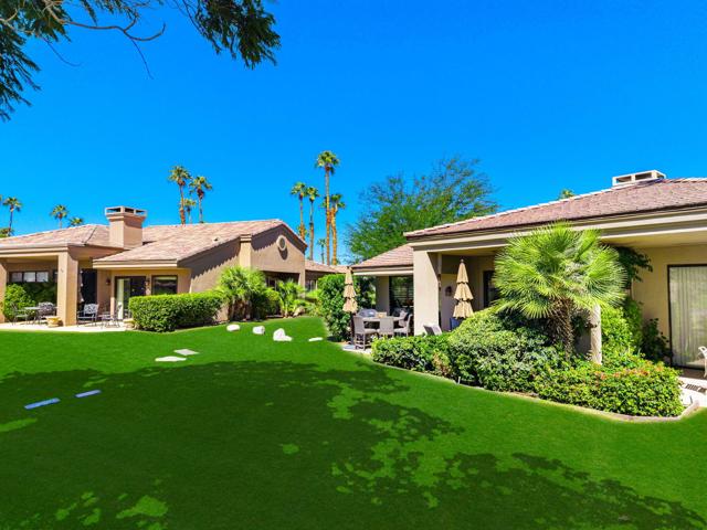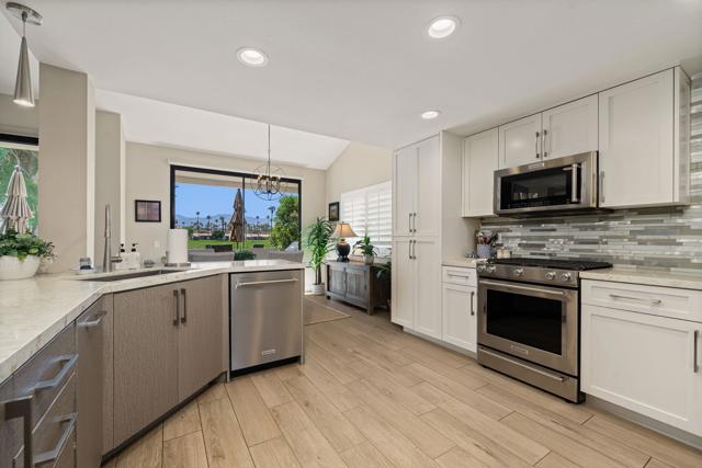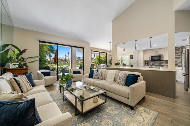 LOCATION, LUXURY, & LIFESTYLE!Stunning End-Unit Condo with Panoramic Mountain, Water & Golf Course ViewsSituated in a prime location with breathtaking southern panoramic views, this beautifully remodeled 3-bedroom, 2-bath end-unit condo (1,627 sq. ft.) overlooks serene lakes, the prestigious Championship Course Holes # 11, 12, & 13, and the iconic Palm Valley ''Signature Island Green.''Step inside to a modern, open-concept layout designed for seamless indoor-outdoor living and effortless entertaining. The upgraded chef's kitchen boasts custom cabinetry, quartz countertops, and top-of-the-line stainless steel appliances. Both bathrooms feature sleek, tiled walk-in showers and bidets, blending comfort with modern elegance.Other highlights include:Furnished per inventory - move-in ready or rental-readyInsulated garage with built-in cabinets for added storageExtended pavered driveway - rare, extra-long lot perfect for guest parkingPrivate golf course patio with unforgettable sunset and water viewsMature Argentine Mesquite tree offers natural shade & added privacyPie-shaped lot spacing - generous separation from neighborsEnjoy resort-style amenities in this vibrant community that allows short-term rentals, making it ideal as a full-time residence, vacation retreat, or income-generating investment. The Club offers a wide range of activities, social events, and fitness/lifestyle amenities to suit every interest.Don't miss this rare opportunity to own one of the best view locations in Palm Valley--perfect for year-round living or a stylish desert getaway!