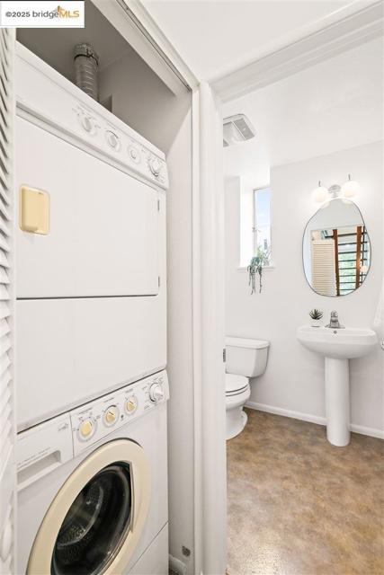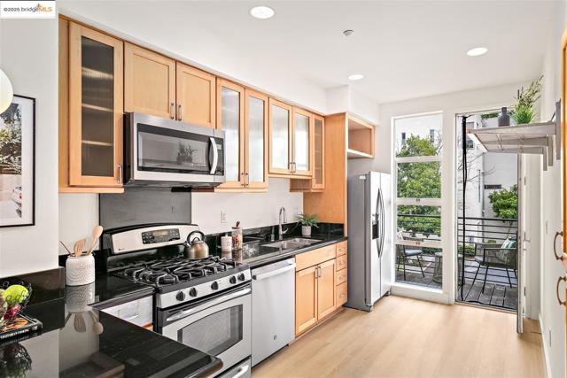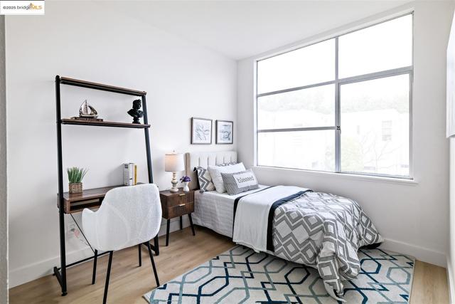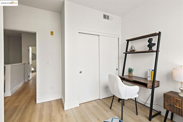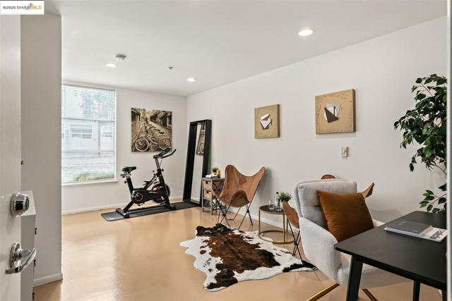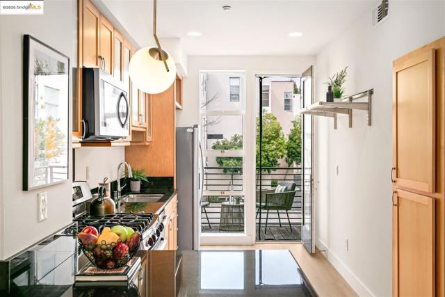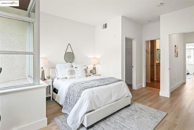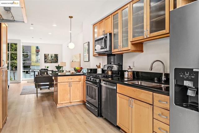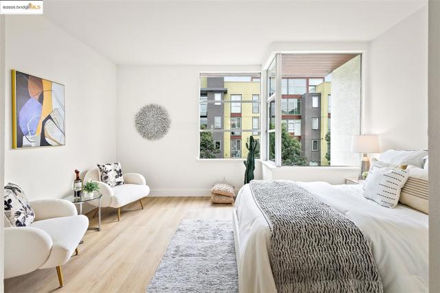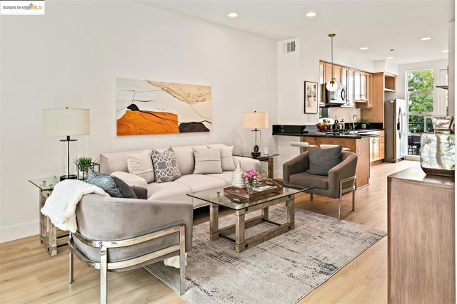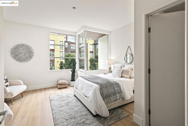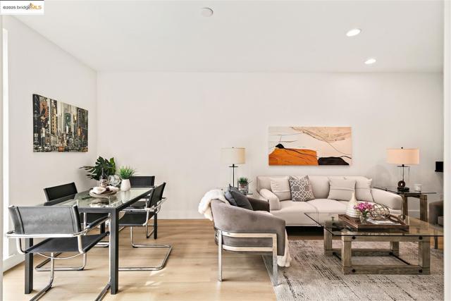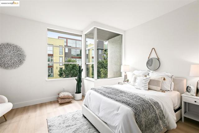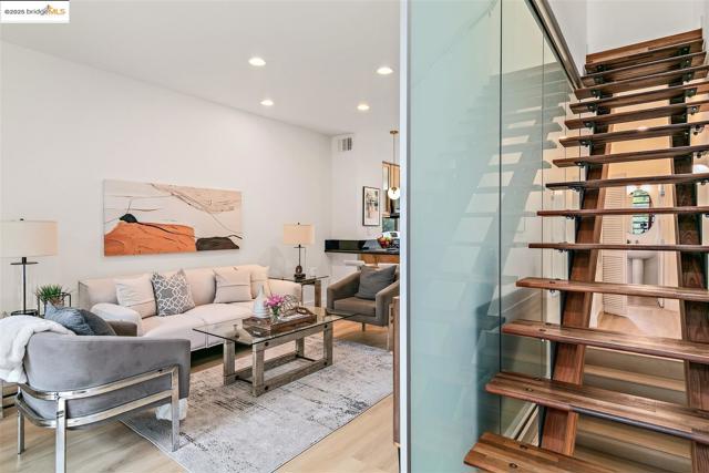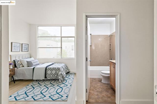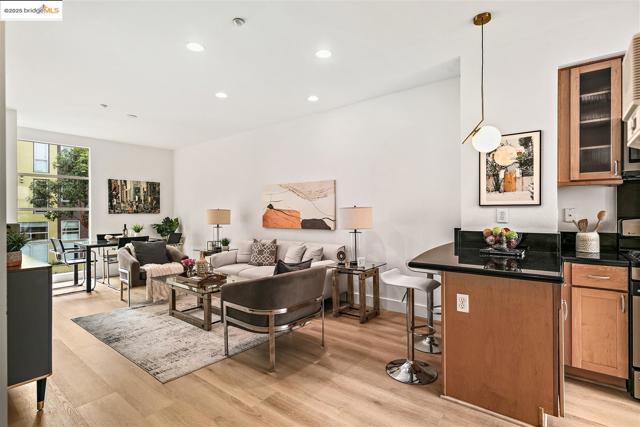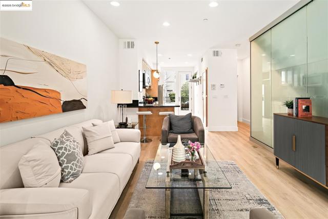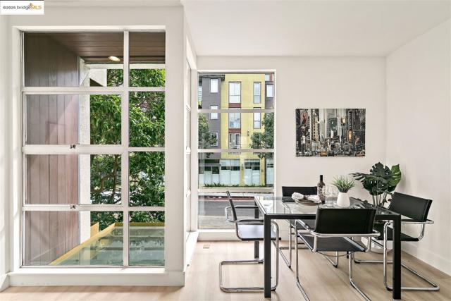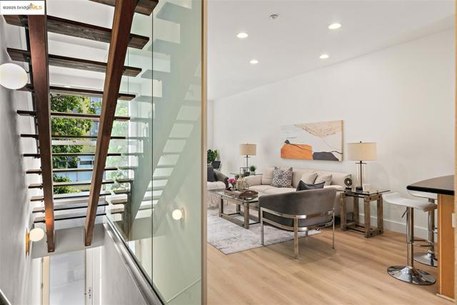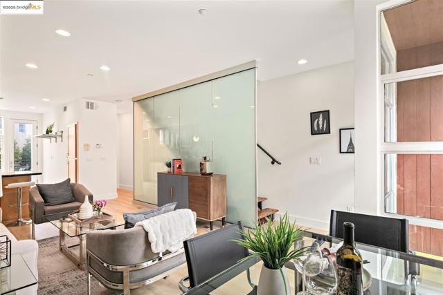 Welcome to modern elegance at 1354 Powell Street in Emeryville. This thoughtfully designed home features 2 bedrooms, 2.5 bathrooms, and a flexible multipurpose room for office or entertainment use. The open-concept living and dining spaces, paired with a sleek kitchen, ensure a seamless flow, highlighted by a striking floor-to-ceiling glass wall. Enjoy a tranquil balcony, a convenient half bath, and in-unit laundry. The third floor impresses with two en-suite bedrooms, each offering private bathrooms for ultimate comfort. Updated luxury vinyl plank flooring and a 1-car garage with interior access enhance convenience. With low HOA dues of $279/month, this home is centrally located near Bay Area amenities, providing easy access to freeways, parks, shops, and entertainment. Adjacent to the property is a pedestrian and bicycle path, the Emeryville Greenway, linking various parts of the city for recreational and commuting purposes. Enjoy seamless travel with a free shuttle to BART, AC Transit, and Amtrak. With the Greenway and local parks just around the corner, staying active and healthy is effortless.