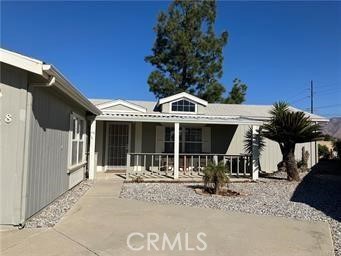 This home located in the desired & gated 55+ senior community of Foothills of Hemet was totally remodeled a few years ago & well cared for so it's like new. Wall to wall luxury vinyl plank flooring. Light & bright kitchen and the third bedroom which doesn't have a door both open up to the living room making the area very open & inviting. Primary and other guest bedroom are spacious. Ceiling fans & newer A/C keep you comfortable all year long. There is also an oversized one car garage (plus extra parking in the front yard which is fantastic) and a breezeway between the primary bedroom & the garage that is great for storage. Easy maintenance yards, and in the back there is a very nice covered patio, The front porch is a lovely place to relax with your morning coffee or enjoy the evening sunsets & breezes. The home itself sits on one of the largest lots in the park, backs up to Commonwealth with gorgeous mountain views and no neighbors behind you. The park is clean, quiet, gated and just plain awesome with amenities including 2 swimming pools, spa, pickleball courts, air-conditioned shuffle board court, exercise room, recreation hall w/kitchen, and rooms to enjoy billiards, cards & crafts. Ask about the park's RV parking area. Commuter friendly, and close to shopping & restaurants.