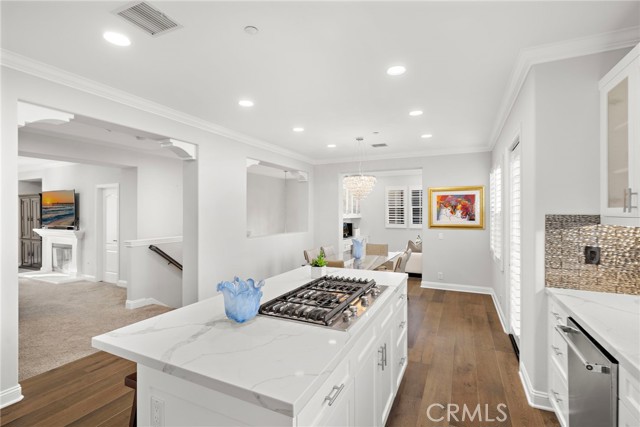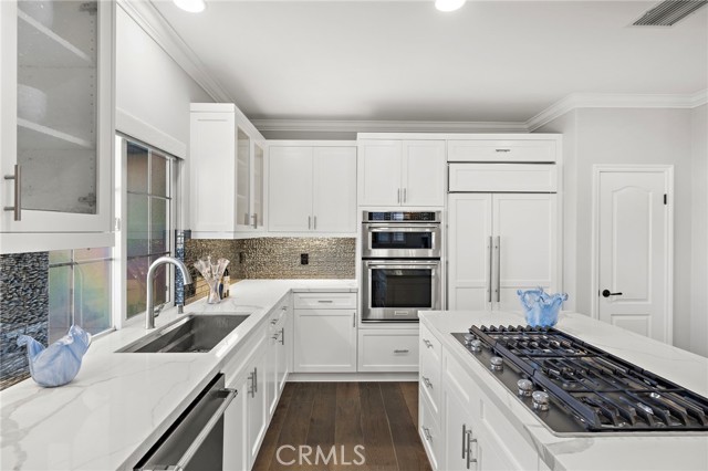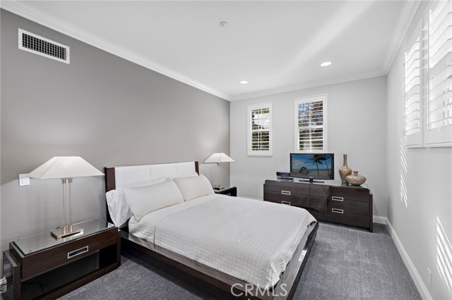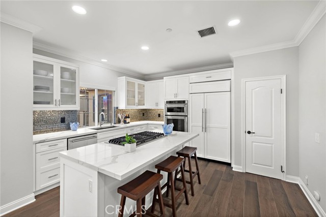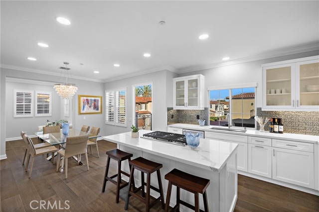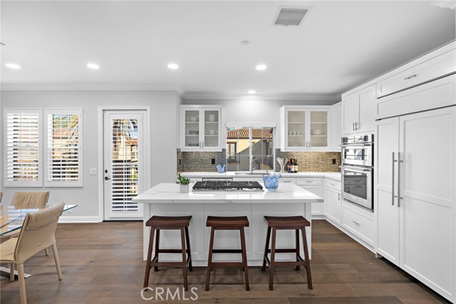 Welcome to a sanctuary of sophisticated coastal elegance nestled in the exclusive enclave of Ziani, Newport Coast. This exquisitely reimagined residence offers an unparalleled lifestyle of luxury and refinement, where every detail has been thoughtfully curated to elevate daily living into an art form. Step into an impeccably styled interior, where a crisp white palettes and rich wood accents create an atmosphere of serene sophistication. Boasting three spacious bedrooms and a refined den/office, this home seamlessly blends comfort with high design. Expansive living spaces are bathed in natural light, flowing effortlessly onto two generous balconies that capture gentle ocean breezes and tranquil vistas - ideal for relaxation or alfresco entertaining. Arched doorways and plantation shutters lend timeless architectural charm, while designer finishes add modern flair, crown molding, wide-plank flooring, and recessed LED lighting. A chef’s dream kitchen is airy and expertly appointed with a quartz island, counter seating, a built-in SubZero refrigerator, high-end stainless steel appliances, and a striking designer backsplash. The adjacent dining room and inviting living room with a glowing fireplace are perfect for sophisticated entertaining or intimate gatherings. Additional highlights include a second-level laundry room and a finished two-car garage with abundant storage offering added convenience. Residents of Ziani enjoy access to an array of resort-style amenities, including a private pool and spa, clubhouse and putting greens. Ideally located moments from world-class golf courses, upscale dining, premier shopping, and scenic hiking/biking trails with direct access to the Beach. A rare offering in one of Southern California’s most coveted coastal communities, this turnkey residence is the epitome of California elegance—where elevated design meets effortless lifestyle.