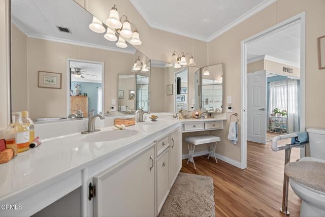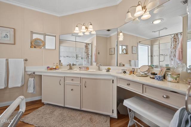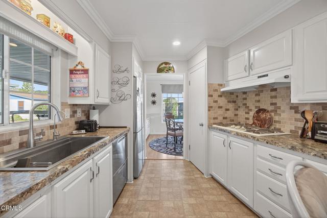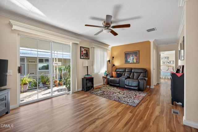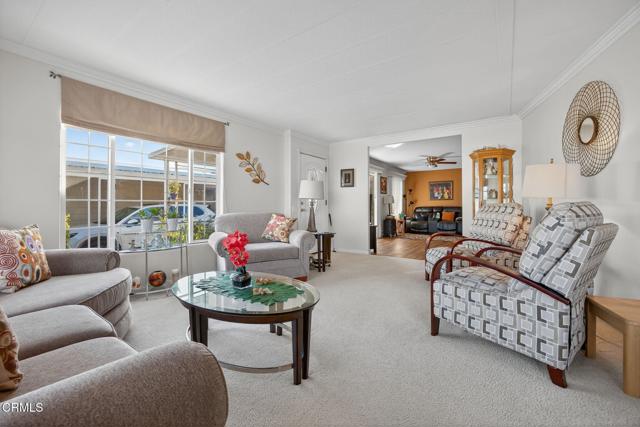 Welcome to this lovingly maintained 2-bedroom, 2-bathroom home located in one of the most sought-after 55+ gated communities in the county. From the moment you arrive, you'll appreciate the charm and care that radiates throughout this lovely property. Enjoy a bright and open floor plan with plenty of natural light, tailormade for relaxing or entertaining. The updated and upgraded kitchen features stainless steel appliances including dishwasher drawers, an easy access wall oven, built-in microwave and refrigerator. The kitchen also offers peninsula style seating and a reverse osmosis water system. Both bedrooms are generously sized, including the primary suite with a private bathroom decked out with a large tiled shower. Step outside to the quaint brick patio and take in breathtaking mountain views or stroll over to the resort-style community pool for a refreshing dip. Golf lovers will appreciate the Camarillo Springs golf course steps away from your front door. With hiking accessible mere blocks from this home, there's no shortage of ways to stay active and social in this vibrant neighborhood. Located just minutes from downtown Camarillo to the north and Thousand Oaks to the south, you'll enjoy convenient access to shopping, dining, and entertainment--all while living in a peaceful, secure setting.