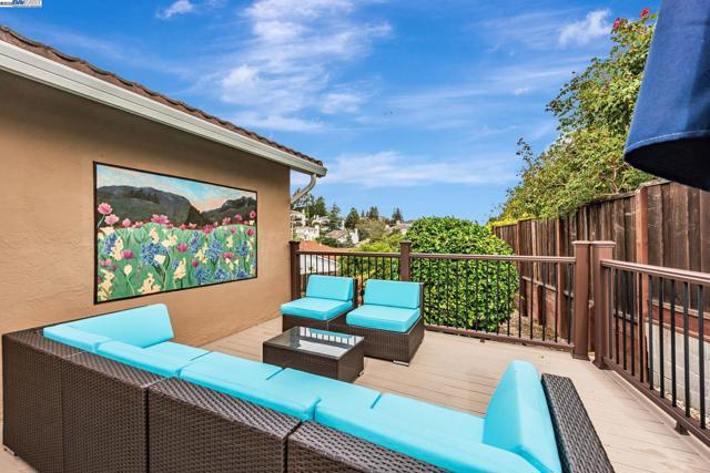 Step into this lovingly maintained home in a peaceful neighborhood where warm hardwood floors guide you through bright, comfortable living spaces. Sunlight filters through energy-efficient dual-pane windows — including premium Andersen windows — creating a cheerful, quiet interior while helping reduce utility costs. The updated kitchen is a chef’s delight with quartz countertops, a tumbled-tile backsplash, built-in gas cooktop and a built-in self-cleaning oven. A generous work island centers the space and opens to an eating area, where sliding glass doors lead to a private deck overlooking serene hilltop views — perfect for morning coffee or evening entertaining. The owner’s suite offers privacy and convenience with mirrored wardrobe storage and a recently remodeled bathroom. Downstairs, a spacious family room provides flexible living with direct access to a landscaped backyard, ideal for indoor-outdoor living or play. An additional downstairs bedroom and full bath make a comfortable home office, guest suite, or au pair quarters. The oversized attached garage includes abundant storage and there’s clear potential to expand or reconfigure spaces to suit your needs. Located minutes from transportation routes, this home blends everyday convenience with quiet suburban charm.
