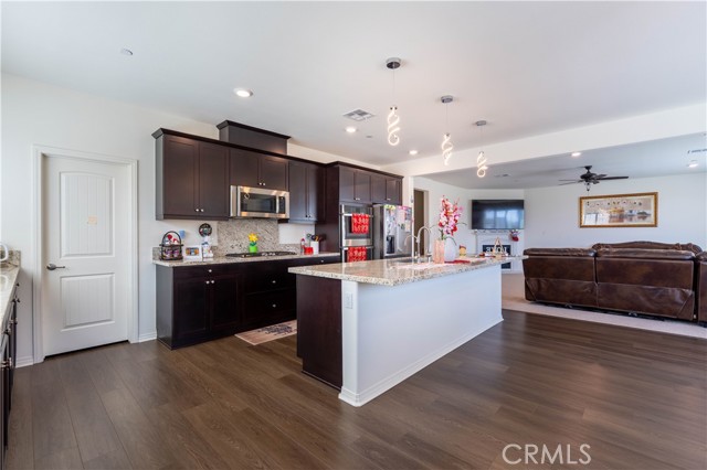This stunning home is located in the desirable Shadow Rock community in North Jurupa Valley. Ready for immediate move-in. This beautiful home offers 5 bedrooms and 3 full bathrooms, 1 bedroom and 1 full bathroom located downstairs. Master Bedroom enjoys breathtaking mountain views, and in the distance, you can even spot the scenic Oak Quarry Golf Course. The home features a spacious open floor concept. The kitchen is equipped with granite countertops, burgundy-colored cabinets, and a walk-in pantry. Also, It has the Water purifying installed. The upgraded backyard includes artificial turf, providing low-maintenance landscaping. Shadow Rock Park is perfect for the whole family, featuring a children’s playground, basketball court, baseball field, picnic areas with cabanas, walking trails. The property also offers energy savings, as the buyer will need to assume the existing solar lease. There is NO HOA. The property is conveniently located near the freeway for easy access.