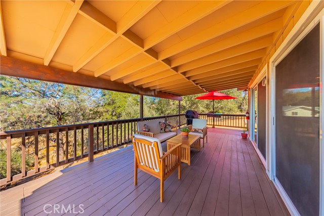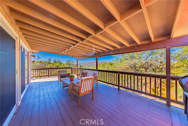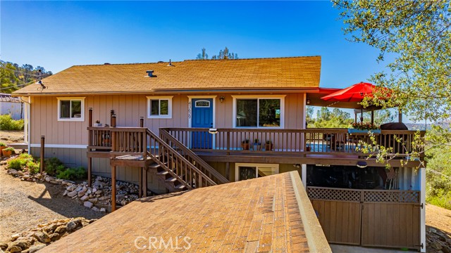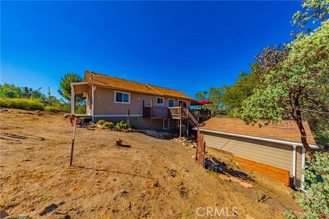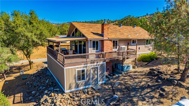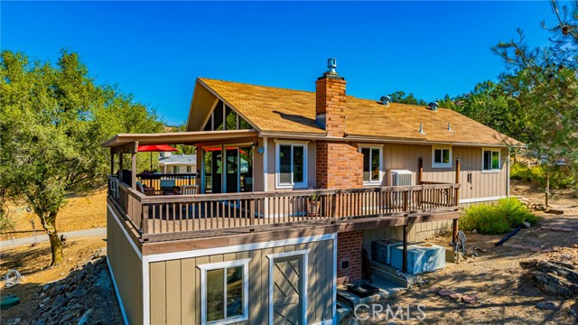 Discover charm and comfort in this beautifully updated 2-bedroom, 1-bath, cabin style home in Yosemite Lakes Park. Set on a well-manicured 1.02 acres, this property offers peaceful living with modern style. Inside, the fully remodeled kitchen and bath shine with fresh finishes, while the bedrooms have been tastefully updated. A versatile bonus room downstairs complete with laundry can serve as an office, studio, or anything you imagine. Step out to the wraparound deck (covering about 50% of the perimeter) and enjoy breathtaking views of the rolling foothills. Outside, you'll find a fenced garden, low-maintenance landscaping, a 1-car detached garage, plus a 1-car enclosed carport with a gate for extra security. Yosemite Lakes Park residents enjoy fantastic amenities, including a golf course, swimming pool and hot tub, tennis courts, clubhouse, restaurants, equestrian center, and scenic walking trails. With too many upgrades to list, this home blends modern updates with serene country living just a short drive from Yosemite National Park and Fresno.