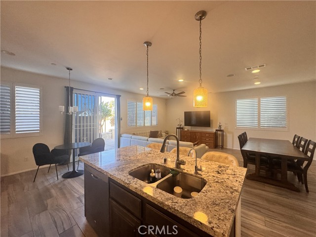 Charming 4-Bedroom + Den Home in Cedar Point, Chino*** Welcome to this beautiful two-story home in the desirable Cedar Point community of Chino. Featuring great curb appeal, a functional layout, and a prime location near schools, shopping, hospitals, and the police station, this home offers comfort and convenience for modern family living. Enjoy a spacious open floor plan with a gourmet kitchen boasting granite countertops, stainless steel appliances, a large island with bar seating, and a stylish backsplash. The kitchen flows into a bright dining area and living room with plantation shutters, recessed lighting, and a sleek ceiling fan—perfect for everyday living and entertaining. First Floor Includes: Private bedroom with en-suite full bath – ideal for guests or multi-gen living Powder room for guests Den – perfect as an office, playroom, or optional 5th bedroom Second Floor Features: Large master suite with walk-in closet and private retreat area; Junior suite with its own bath and walk-in closet; Third bedroom with access to a double-sink bathroom; Public record shows 4 bedrooms, but the home includes 4 full bedrooms plus a versatile den. Move-in ready and thoughtfully designed—don’t miss this Cedar Point gem!