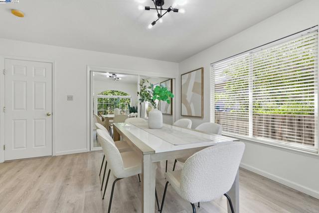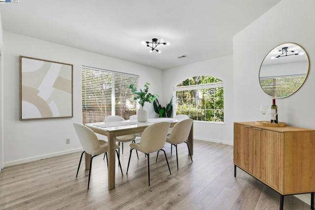 Location, location, location! Welcome to this beautifully updated single-level North-West facing home nestled in one of Fremont’s most desirable neighborhoods, within the acclaimed Mission San Jose schools attendance area. Totally modernized & no longer a 1954 home. This custom & expanded residence offers a modern floor plan w/ no steps inside the home including 5 bedrooms & 2 full bathrooms, or 4 bedrooms w/ a large family room or formal dining room. The custom double-door entry way opens to a welcoming foyer & a bright formal living room w/ recessed lighting & custom skylight. Updated kitchen features custom cabinetry, quartz counters, high-end appliances & an eating area w/ access to the backyard patio. Both bathrooms have been updated. Other fine features include premium luxury flooring, recessed LED lighting, dual-pane windows, upgraded central AC & heating system, copper plumbing, & finished garage w/ new epoxy flooring. The front, side, & back yards are professionally landscaped w/ custom cement aggregate driveway & walkways, lush green areas, & beautifully designed details. Conveniently located near Ohlone College, historic Mission San Jose, restaurants, shopping, & Lake Elizabeth Central Park. Quick access to 680, 880, BART station & major Silicon Valley companies shuttl