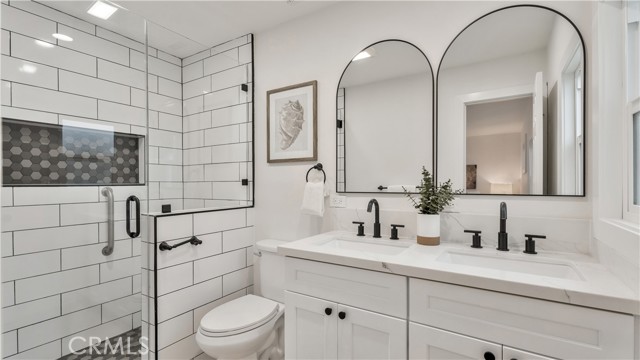 Most affordable upgraded single family home in all of Alhambra!!! This beautifully remodeled 3-bedroom, 2-bathroom home offers a perfect blend of modern upgrades and timeless design. Every detail of this property has been carefully updated to provide comfort, style, and peace of mind. The home has been re-wired and re-piped, ensuring efficiency and reliability for years to come. The kitchen has been upgraded with sleek white shaker cabinetry, stunning quartz countertops, and stainless-steel appliances. Its open layout flows seamlessly into the dining and living areas. Both bathrooms have been beautifully redesigned with high-end finishes. The master bathroom features a modern walk-in shower with chic subway tiles and black hardware, while the secondary bathroom offers a pristine shower/tub combo, catering to both style and functionality. Throughout the home, brand-new vinyl windows invite in an abundance of natural light, highlighting the warm lvp flooring that ties the space together. This property is ready for you to call it home! If you’re looking for a modernized home with timeless appeal in Alhambra, 802 S Olive Ave is ready to welcome you.