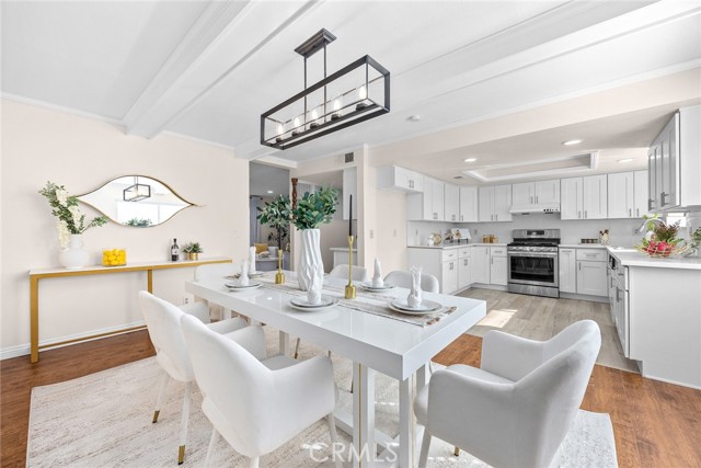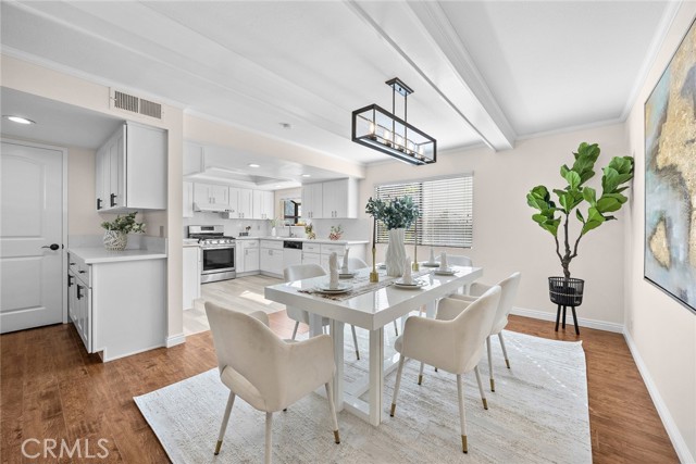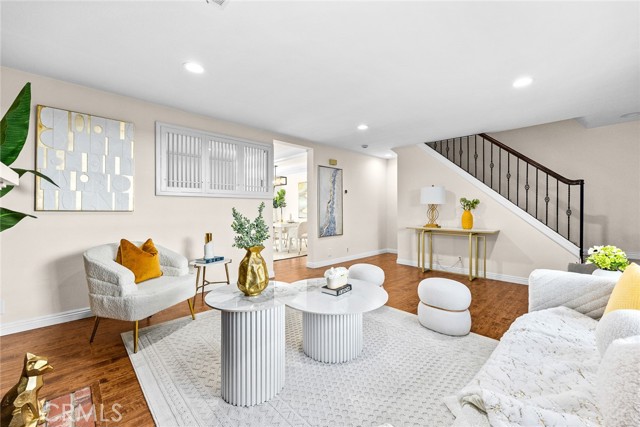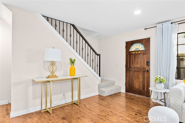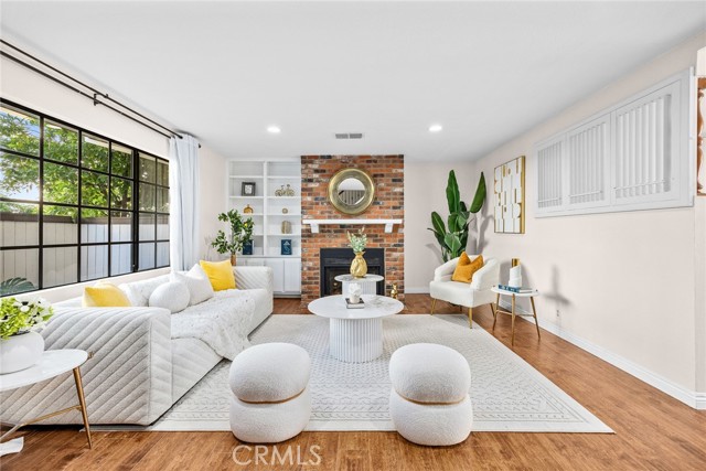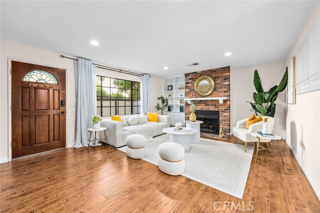 This charming townhouse is located in the heart of Arcadia, within the highly distinguished Arcadia Unified School District. Beyond a gated private yard, you are welcomed into a spacious living room with large windows that fill the space with natural light and a breezy atmosphere. A brick fireplace and laminate flooring add an elegant touch. The updated kitchen offers abundant cabinetry, ample counter space, recessed lighting, and stainless-steel appliances and it is perfect for preparing meals and entertaining. Adjacent to the kitchen, the open dining area features beautiful wooden ceiling beams that add warmth and character. Upstairs, the expansive primary suite impresses with high ceilings and exposed beams, creating a luxurious, open feel. The primary bathroom was renovated and with a sliding barn door. The home also includes a large laundry room with extra storage and a convenient countertop for folding. Additional highlights include move-in ready condition, polished interiors, and an attached two-car garage with plenty of storage space. Ideally situated near Westfield Santa Anita Mall, the LA County Arboretum, 99 Ranch, Vons, restaurants, banks, and parks. With its prime location and award-winning schools, this is a wonderful opportunity to own a lovely home in Arcadia!