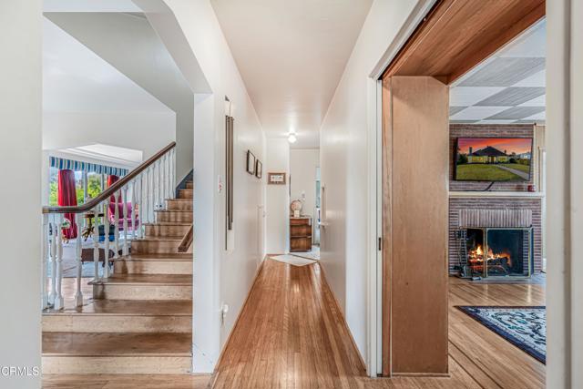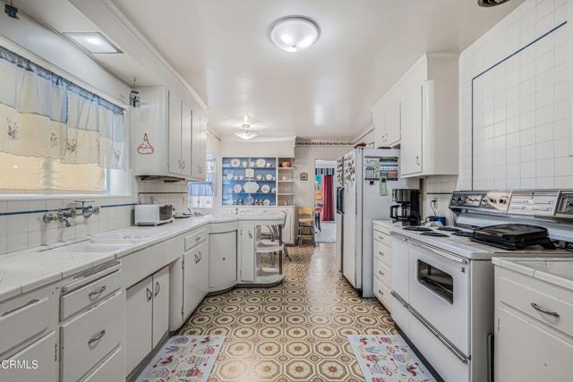 This custom-built Oxnard home offers timeless character, impressive craftsmanship, and endless potential. With 3 bedrooms, 2 full bathrooms, and 2,453 square feet of living space on a 5,662 square foot lot, this property blends vintage charm with features that were remarkably modern for its time.From the moment you arrive, the home's unique architecture and welcoming front yard set it apart. The large windows and prominent chimney enhance its inviting curb appeal. Inside, you'll find two spacious living rooms and two dining areas, offering abundant space for both relaxation and entertaining.To the left of the entry, the formal living room features oversized windows overlooking the front yard and a cozy fireplace. To the right, the dining room provides easy access to the kitchen, creating a perfect flow for gatherings.The family room exudes warmth with its rich wooden walls, brick fireplace, and built-in storage. The kitchen, complete with a vintage 1950s stove, patterned flooring, tiled countertops, and ample cabinetry, retains a nostalgic charm. A laundry chute, a rare feature for homes of this era, adds to its thoughtful design. The adjacent laundry room includes extra storage and a utility sink for convenience.Downstairs, two comfortable carpeted bedrooms share a full bathroom, while the upstairs primary bedroom connects directly to a full bath that also serves the hallway.The property also includes an oversized two-car garage with a built-in workshop and an enclosed exterior bonus room, ideal for creative projects, hobbies, or additional storage.Out back, a combination of concrete patio and grass offers a versatile space for gatherings.Conveniently located near parks, schools, and shopping centers, this one-of-a-kind property offers a blend of custom design, spacious living, and vintage charm, a true testament to craftsmanship and forward-thinking architecture.