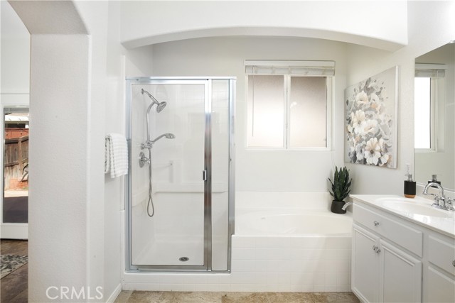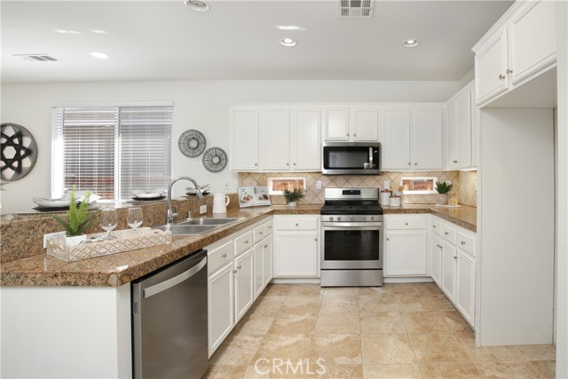 A Great SINGLE STORY, 4 bedroom, 3 bath home in the community of Sierra Ridge! NO HOA!! An open floor plan provides convenient living with the kitchen, dining area and living room with fireplace in a GREAT ROOM. Recently upgraded kitchen with granite countertops, breakfast bar, stainless steel appliances, recessed lighting and a large pantry. Primary suite includes a spa-like, large bath with soaking tub, separate shower and walk-in closet. Front bedroom and 3/4 bath is perfect for guests, intergenerational households or a quiet office. Inside laundry room with extra storage. Central Air Conditioning. Newly added Solar. Attached 2 car garage. Close to Heritage High School, shopping and dining.