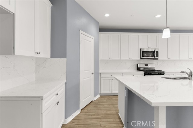 Welcome to the refined piece of art single-story home that does not come on the market very often. This home is located in the new community (Deer Creek), on the cul-de-sac with very few homes on the same street. This astonishing property was built in 2021. One of the few homes recently built with NO HOA, NO MELLO ROOS. This masterpiece is in Quartz Hill (Lancaster), a very sought after neighborhood in close proximity to shopping centers & freeways. It's the ultimate true definition of today's modern & open concept spread on 2,980 square feet of pure living space. It boasts 4 bedrooms, 3.5 baths, 3 cars tandem garage. Upon entry, you will be met with a beautiful living room leading you to a gourmet oversized eat-in island in the kitchen with luxurious Quartz Counter-tops, walk-in pantry, breakfast nook along with a large family room. The primary room is extremely spacious and has a breathtaking bath with garden tub, deck & a spectacular walking closet. Moreover, the backyard is incredibly beautiful with a mixture of artificial turf & concrete. The beauty of this property extends way beyond words. Come see it! Last, not least the solar panels will be at no cost to the buyer.