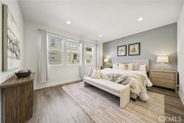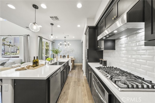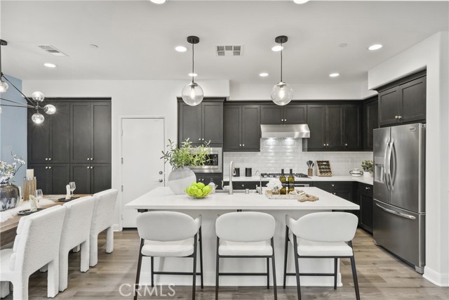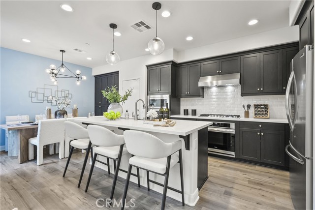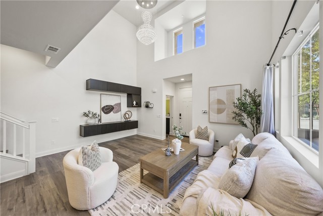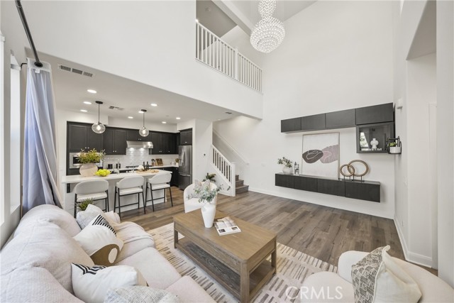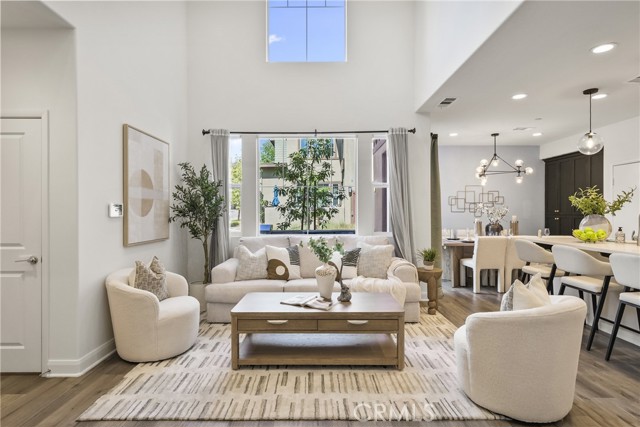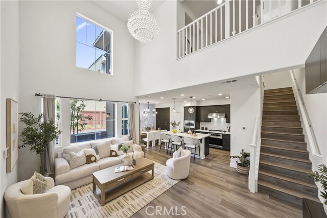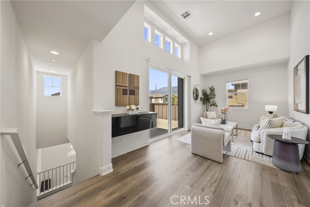 Welcome to this elegant three-story contemporary home in the desirable Day Creek Square community of Rancho Cucamonga. Just steps from Day Creek Marketplace and minutes to the 210 freeway, this residence combines style and convenience. The bright living room with soaring ceilings flows into a gourmet kitchen featuring a large center island, stainless steel appliances, and designer finishes. A private patio is perfect for BBQs, while the upper levels include a spacious loft, luxurious primary suite with walk-in closet and spa bath, and a third-floor balcony showcasing stunning San Gabriel Mountain views. Additional highlights include a two-car garage with Tesla charger and access to resort-style community amenities with pool and BBQ area. With top schools and Victoria Gardens nearby, this home offers modern living at its finest.