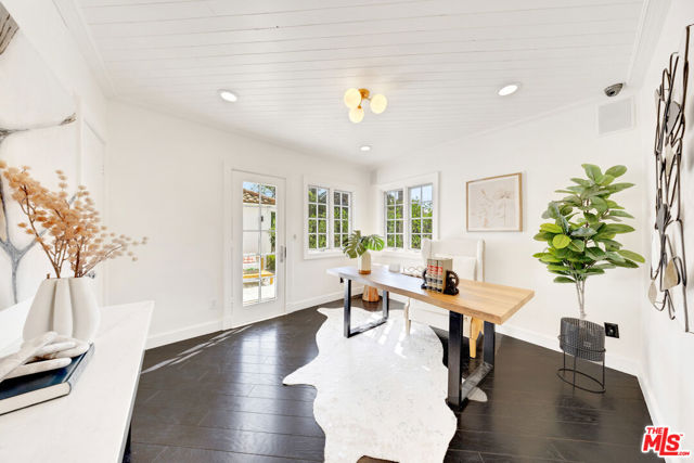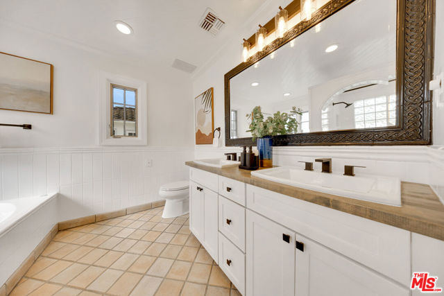 One of Miracle Mile's rare gated Spanish residences, privately set on a nearly 10,000 sq. ft. corner lot, blending historic artistry with modern comfort. This 3-bedroom, 3-bathroom home spans 2,503 sq. ft. and combines timeless character with thoughtful updates in one of Los Angeles' most desirable neighborhoods. The front yard offers classic curb appeal, while the backyard unfolds as a private retreat with shaded lounge areas and a sparkling 8-foot deep pool, ideal for entertaining or unwinding under the California sun. The entry is distinguished by Ernest A. Batchelder tiles at the front door, while the living room is anchored by a Batchelder fireplace surround that preserves rare architectural details from the period. Sunlight fills the expansive living room with hardwood floors, flowing seamlessly into the formal dining area and a bright kitchen with freshly painted cabinetry. French doors open onto a tiled terrace that flows seamlessly to the backyard, delivering the indoor-outdoor living experience Los Angeles buyers search for, your own private retreat that evokes a true California oasis. Recent improvements provide both beauty and peace of mind, including a re-tiled roof with new waterproof underlayment, sewer liner installation, two new bathroom vanities, fresh interior and exterior paint, new lighting in bedrooms, living room, and hallways, an upgraded security system, termite prevention and treatment completed, and maintenance updates to the pool and fireplace. Just minutes from The Grove, LACMA, Beverly Hills, and premier dining and shopping, this home offers the perfect balance of central convenience and private sanctuary living. Timeless design. Classic curb appeal. Private oasis. This is Miracle Mile living at its finest.