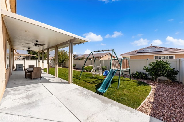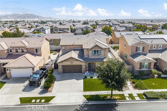 Turnkey 4-Bed/3-Bath Beauty in Rosena Ranch! This beautifully upgraded 2,690 sq ft home offers 4 spacious bedrooms (including a main-floor guest bedroom), 3 full baths, and sits on a 6,000+ sq ft lot. The open-concept layout features a beautiful kitchen with granite countertops, full backsplash, stainless steel appliances, and a walk-in pantry. Upgrades include custom flooring, plantation shutters, recessed lighting, and a cozy fireplace in the great room. Enjoy a professionally landscaped backyard with an extended covered patio, included playground, and potential for boat/rv parking. Energy-efficient with solar, alkaline water softener, EV charger, and a generator plug. Large garage and extra-wide driveway for added convenience. Located in the highly desirable Rosena Ranch community—offering resort-style pools, clubhouse, gym, trails, and parks. Close to top-rated schools, shopping, and easy freeway access. A must-see!