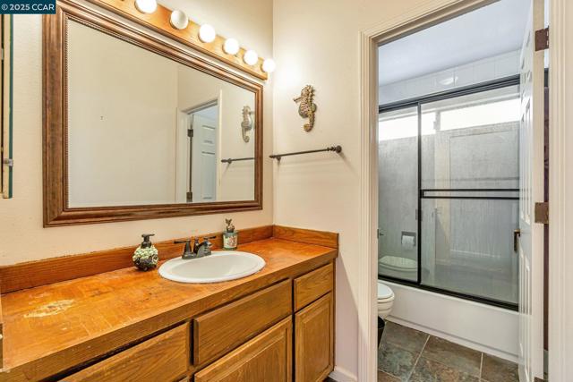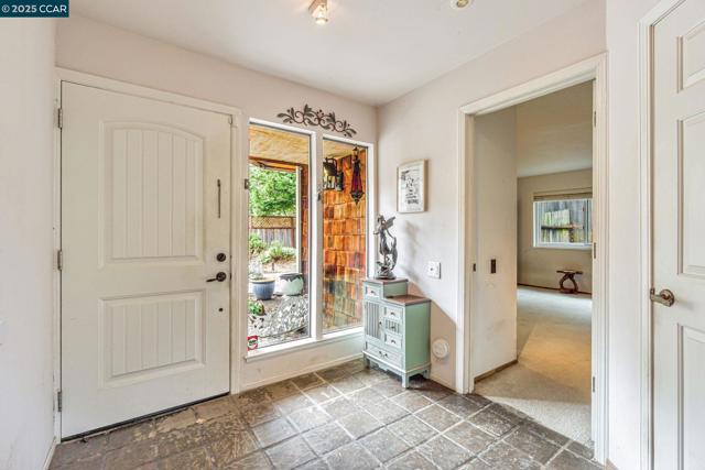 Located in the distinctive and artistic community of Port Costa, this beloved, three-bedroom, three-bath tri-level offers immense potential and is ready for its next owner. The home features a unique, contemporary design with high natural wood ceilings and expansive glass walls, creating an abundance of natural light throughout the main level and master bedroom loft. This open layout is ideal for entertaining or simply enjoying a serene living space. French doors from the kitchen and great room open onto a private deck, offering views of rolling hills—a perfect spot for quiet relaxation or gatherings with loved ones. With one bedroom and a full bath on each level, the home also provides an enhanced sense of privacy. The yards are spacious with plenty of room to garden, play and let your favorite furry friends roam happily. This property offers a rare opportunity to enjoy a vacation-like retreat while remaining just a few miles from urban amenities.