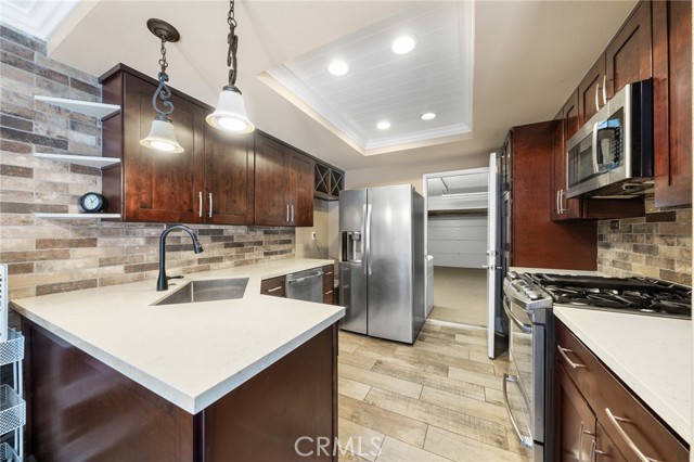 Welcome to 19082 Canyon Court in the amazing community of Portola Hills! This home is perfectly positioned featuring immense privacy, beautiful upgrades and is nestled in the quiet community of Canyon Rim. Designer floors stretch throughout the home while large windows flood in plenty of beautiful natural light. The fireplace will create a cozy feeling during the California nights and the high-pitched ceilings create a bright, open-concept space for an inviting atmosphere perfect for entertaining friends and family. The floor plan encompasses two large suites with updated ensuite bathroom as well as a ground level bathroom. The modern gourmet kitchen comes well-appointed with plenty of upgrades including stainless steel appliances and a beautiful accent wall that flows seamlessly into the dining area and private rear patio. The kitchen also has direct access to the oversized, two car garage. The primary suite is the perfect getaway space complete with a convenient walk-in closet. The spacious patio is very private featuring exquisite landscaping and a delightful space to entertain outdoors. The home is situated just minutes away from an award-winning elementary school and a newly constructed community park. With its warm sense of community and close proximity to shops and restaurants, this home provides the relaxing, comfortable and easy-going lifestyle you have been looking for.