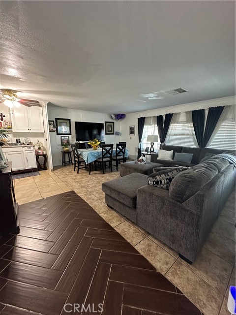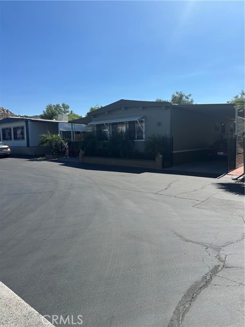 this 3 bedroom 2 bath manufactured home in a tidy hemet mobile home park features central ac and heating, an update kitchen with laminate flooring, laundry hooks ups and a open, spacious layout. Enjoy a three -car driveway, front patio, and a low-maintenance backyard with detached storage adds privacy and extra space.Park amenities include a community pool, recreation room , and guest parking. A practical , comfortable home ideal for modern living in a friendly park setting
