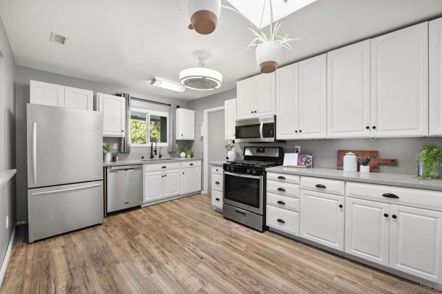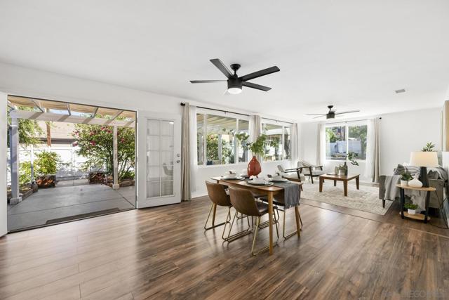 Discover Peace, Space & Possibility in Santee. Welcome to your sanctuary in the heart of Santee-a beautifully updated 4-bedroom, 2-bath home offering both tranquility and room to thrive. From the moment you arrive, you’ll be greeted by picturesque mountain views and a quiet, friendly street just 0.3 miles from Pride Elementary. Inside, enjoy modern comfort with a new roof, newer HVAC, sleek vinyl plank flooring throughout, and tastefully upgraded bathrooms and kitchen. The layout is ideal for entertaining, creating effortless flow between living, dining, family room, and outdoor spaces. Step outside into your private retreat, where mature fruit trees, colorful blooms, and a new fence create the perfect backdrop for relaxation-or your next big idea. With ample space for an RV, boat, pool, or even an ADU, the potential here is endless. Whether you’re gathering under the stars or sipping morning coffee in peace, this property offers room to breathe and space to dream-all just minutes from freeways, shopping, and the convenience of Santee living. Tranquility, upgrades, views, and endless potential-this is the home you’ve been waiting for.