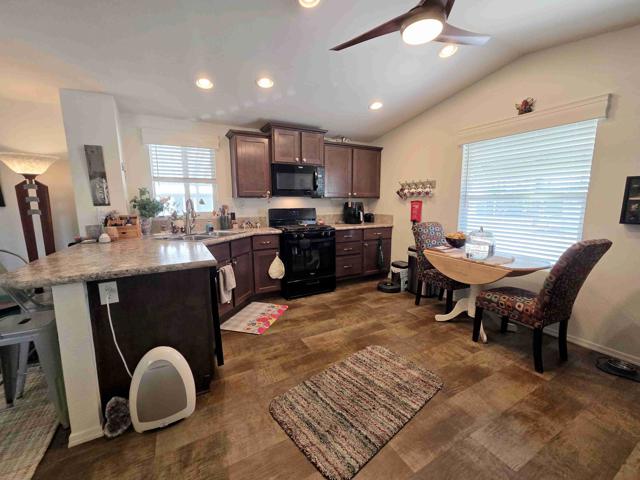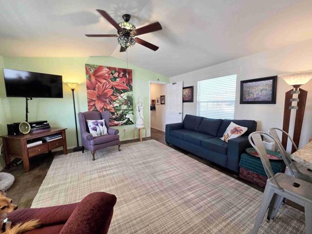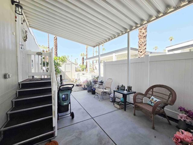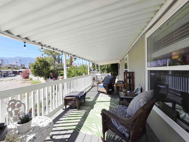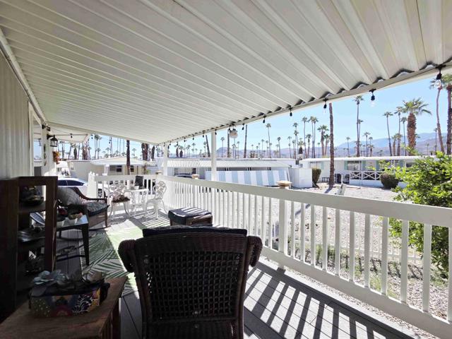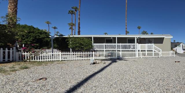 Located in the Royal Palms 55+ community, 200 Butterfield is a 2020 Cavco 904 sq. ft. two bedroom / 1 3/4 bath manufactured home affording the ultimate in contemporary desert living. A large southwest-facing deck affords sweeping mountain views and provides visitors the front entry into the home's bright and spacious living room. The well-designed, fully-equipped eat-in kitchen offers smart dark cabinetry with a bright dining area. Down a short hallway, to the left, is the guest bedroom, currently out-fitted as an office, next to which is the full guest bathroom. Opposite is the laundry area with side-by-side W / D and overhead cabinetry for storage. At the north end of the home is the large primary bedroom featuring a large window that provides more inspiring mountain views and the capacious primary ensuite 3/4 bathroom with dual vanities. The east-facing leisure door to the right of the hallway opens to the covered parking area, at the back of which is a single large storage shed. The home has an extensive stone-covered yard that leads back around to the comfortable and extensive deck. All windows in the dwelling are double-pane, and the home has central heating and A / C as well as two ceiling fans. 200 Butterfield is sold unfurnished. Approval by park management at the Royal Palms is required for purchase; monthly space rent for this home will be $892.00 per month for the new owner, a figure to be verified by buyer.