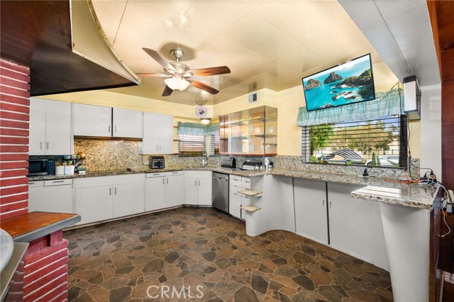 Beautiful and Spacious Shandon Hills Home With bonus guest unit and RV Parking w/Hookups to sewer! Welcome to this charming five-bedroom, two-bath residence located in the desirable Shandon Hills neighborhood of North San Bernardino. This nearly 2,000 sq. ft. home offers a stylish updated mid-century vibe with great curb appeal and plenty of parking. Situated on an expansive 10,000+ sq. ft. lot at the base of the foothills, this property provides both comfort and opportunity. Step inside to find a welcoming living room with a cozy fireplace, a separate dining room, and a very spacious kitchen perfect for family gatherings. The home also includes a versatile bonus sunroom/family room with an indoor laundry area. Out back, enjoy the mature shade and multiple fruit trees that create a peaceful outdoor retreat with endless possibilities for entertaining, gardening, or expansion. The property also includes a detached small guest house and a large bonus building/storage space behind the garage—both offering excellent potential for conversion to ADUs (buyer to verify). This home truly has it all—space, charm, and versatility. Don’t miss your chance to see it! Call today for your private showing.