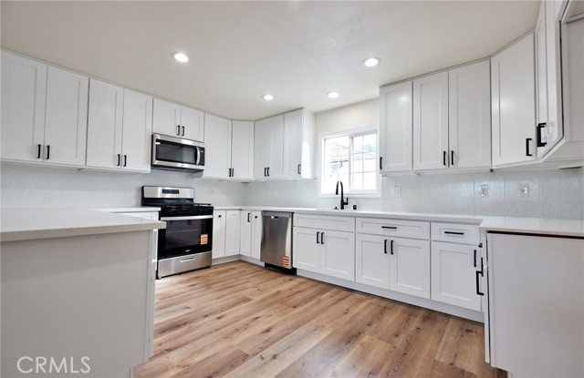 Welcome to this stunningly upgraded 3-bedroom, 2-bathroom single-story home in the highly desirable city of Upland. Situated on a spacious 6,600 sq ft lot, this residence offers 1,529 sq ft of modern living with a wide-open floor plan designed for both comfort and entertaining. From the moment you arrive, the home’s fresh exterior paint, newer roof, and manicured landscaping with new sod and sprinklers create exceptional curb appeal in a quiet, established neighborhood within a great school district. Inside, the home showcases a beautifully remodeled kitchen featuring shaker cabinets, quartz countertops, and brand-new stainless steel appliances. The open design flows seamlessly into the main living and dining areas, perfect for hosting larger family gatherings. Both bathrooms have been completely remodeled with upgraded designer tile, sleek fixtures, and modern finishes, providing a spa-like atmosphere. Each of the 3 spacious bedrooms has been updated with stylish details and all-new fixtures throughout. Additional upgrades include fresh interior paint and new vinyl fence for privacy. The expansive backyard provides plenty of room for entertaining, play, or future enhancements. With every detail thoughtfully upgraded—inside and out—this turnkey Upland home blends modern design, functionality, and lasting quality. Don’t miss the chance to own this move-in-ready property that’s perfect for both everyday living and entertaining.