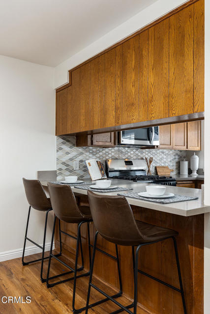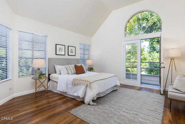 There is much to love about this end-unit 2 BR/2.5 BA townhome located just east of the South Lake Shopping area and just north of Caltech. This charming townhome features abundant natural light, hardwood floors throughout, has a spacious living room/dining area with a handsome fireplace and is open to the inviting kitchen with quartz counters, tile backsplash, stainless steel appliances, built in shelves and convenient breakfast bar. There is a nice front patio perfect for grilling and gardening and another balcony as well on this level. You will also find a handy powder room and direct access to the attached two car garage with laundry hook-ups. Upstairs is the generous primary suite with vaulted ceilings, 2 large closets, another balcony and attached bathroom. There is an additional ensuite with a balcony and lots of built-in cabinets on the landing outside both bedrooms. This property has been well loved and recently painted throughout. In this location you are close to shopping, dining, multiple entertainment and transportation options and just a half block away from the annual Rose Parade! This is a great opportunity to live in a great and convenient location in the desirable city of Pasadena. Come and check this one out right away!