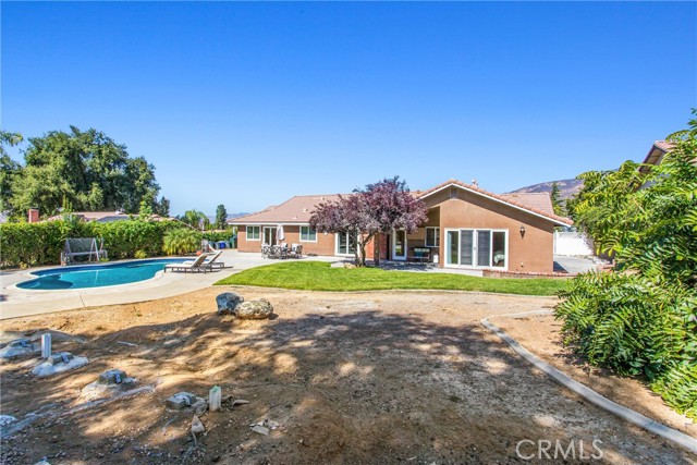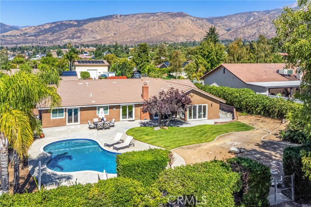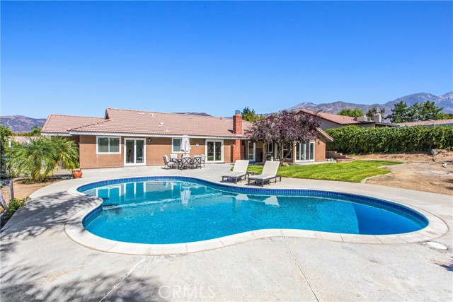Welcome to this perfectly maintained single-story pool home in a highly sought-after North Bench neighborhood of Yucaipa. This beautifully remodeled 4-bedroom, 2-bathroom home offers a comfortable living experience on a generous half-acre lot, complete with mountain views. The inviting floor plan features an updated kitchen equipped with a spacious island and upgraded JennAir and Zline appliances, making it ideal for both everyday living and entertaining. The primary suite offers a peaceful retreat with a walk-in closet, large shower, soaking tub and patio access. The additional bedrooms are spacious and provide plenty of storage. As an added bonus there is the access to the back of the property which opens up possibilities for an ADU, a workshop, or easy access for an RV or boat, and a bridle trail for horses. Conveniently located near schools, shopping centers, restaurants, Oak Glen, and more, this highly desirable property won’t last long!