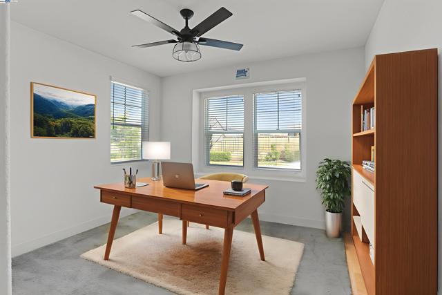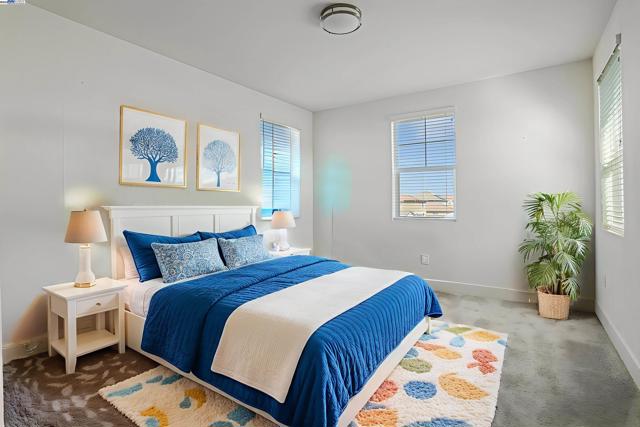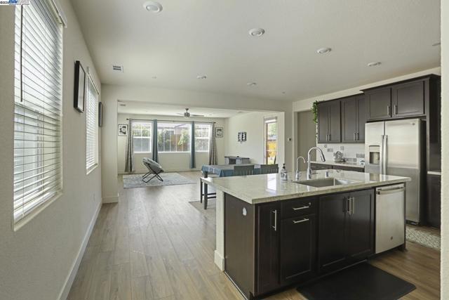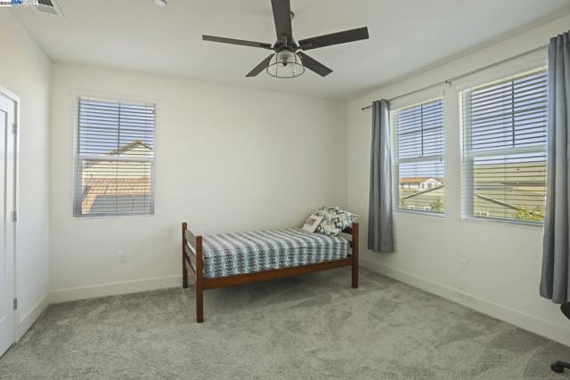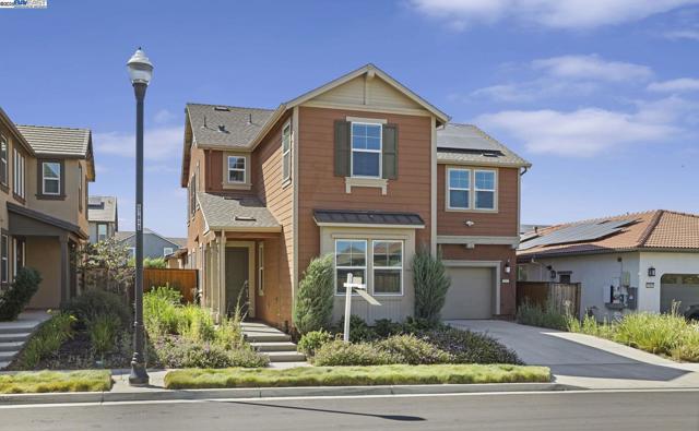 Welcome to this GORGEOUS EAST FACING, 4 BEDROOM, 3 BATHROOM, 2 CAR GARAGE, OWNED SOLAR, BUILT IN 2021, 2,563 sq ft of living space sitting on a massive 5,734 sq ft lot in the highly sought after TRACY HILLS. Upgrades include WOODEN VINYL FLOORS, PREMIUM CARPETS,& EPOXY FLOORING and STORAGE RACKS in the garage. It’s designed for comfortable living as the 1st floor comes with a bedroom and full bathroom. The great room combines the living room, kitchen and dining area creating an open and inviting area with plenty of natural light. The MODERN KITCHEN boasts QUARTZ COUNTERTOPS, SLEEK STAINLESS STEEL APPLIANCES, A LARGE ISLAND, CUSTOM BACKSPLASH, & WALK-IN PANTRY. The primary suite is a true sanctuary with a luxurious en suite bath featuring a LARGE SOAKING TUB, SEPARATE SHOWER, HIS AND HER SINK, AND A GENEROUS WALK-IN CLOSET. Enjoy the LARGE BACKYARD with FULLY GROWN FRUIT TREES and lots of green space to play & party with family & friends. Enjoy unparalleled PRIVACY as there is lots of open space in the NORTH/EAST CORNER & front of the home. It’s walking distance to TOP RATED CORRAL HOLLOW ELEMENTARY SCHOOL. Amenities include a CLUBHOUSE, & SWIMMING POOL perfect for summer. You’ll have EASY ACCESS TO I-580 & ACE train station. Don't miss the chance to make this your dream home!!!