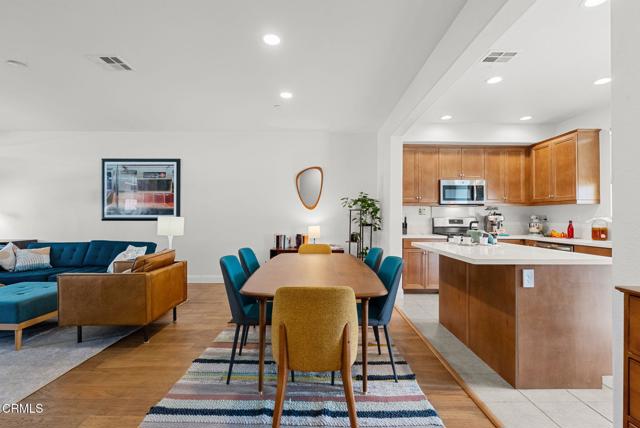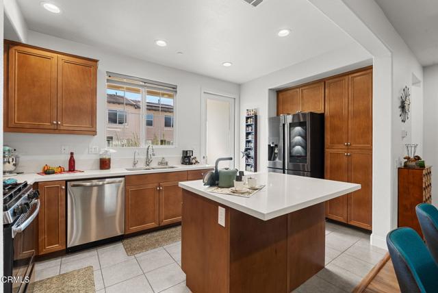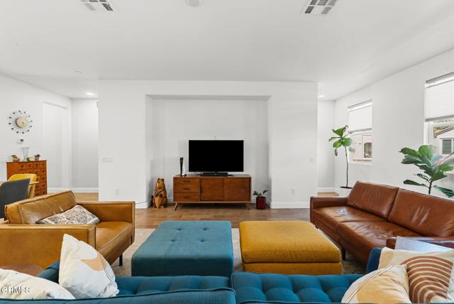 Located in the highly desirable Springville AIRE community, this wonderfully maintained 4 bedroom, 3.5 bath home offers the perfect blend of comfort, convenience, and modern style. With 1,898 square feet of living space, several windows allow for lots of natural light and features an open-concept kitchen and living room with engineered hardwood flooring, ideal for both everyday living and entertaining.The kitchen is complete with stainless steel appliances, quartz countertops, a large island, ample cabinetry and a private balcony. Upstairs you'll find 3 bedrooms, including a primary suite with a walk-in closet and full bathroom. Also on the upper floor, an additional full bathroom, and a spacious laundry room! The lower level boasts an ensuite bedroom with a full bathroom! Perfect for guests, in-laws, or a private home office. This property includes refrigerator, washer & dryer, soft water filtration system, solar system (leased) and more!Additional highlights include central A/C, recessed lighting, and an attached two-car garage with epoxy flooring, driveway, association pool and hot tub! Enjoy the nearby 5 acre Mel Vincent Park with playgrounds, volleyball / basketball courts and walking paths. Close to award-winning schools, amazing shopping, the well-known Camarillo Outlets, restaurants, The Springville dog park, movie theatres, some of California's best beaches and Quick access to the 101 freeway and much more!!! Since Camarillo is situated between Malibu and Santa Barbara, you really are close to the Pacific Ocean and the beautiful harbors and beaches of Port Hueneme, Oxnard, and Ventura! Approximately 9 miles to Ormond Beach, 9 miles to the Port Hueneme beaches and Pier (great fishing spot), 13 miles the Ventura Pier and beaches!Experience the best of Camarillo living in one of its most sought-after neighborhoods, Springville!
