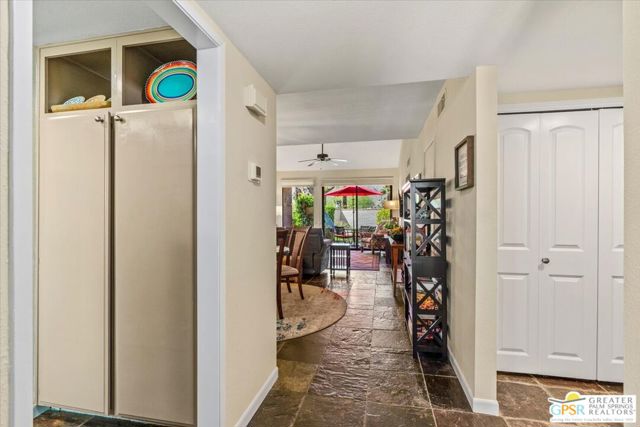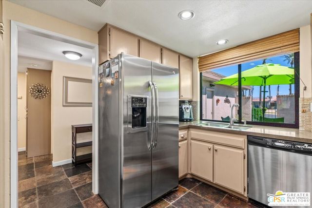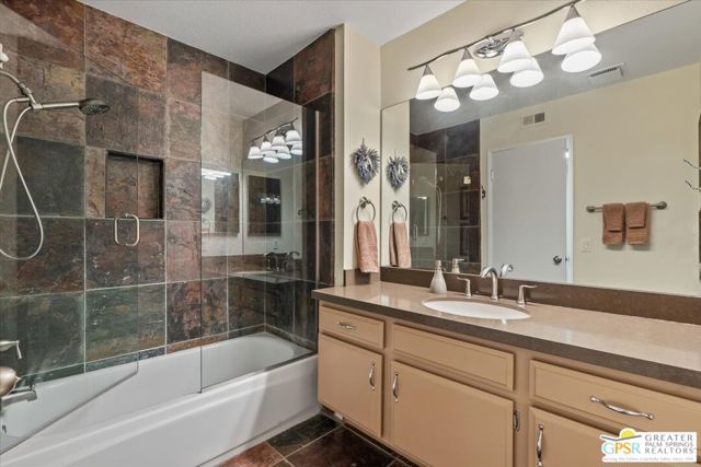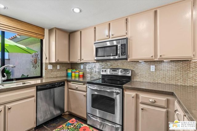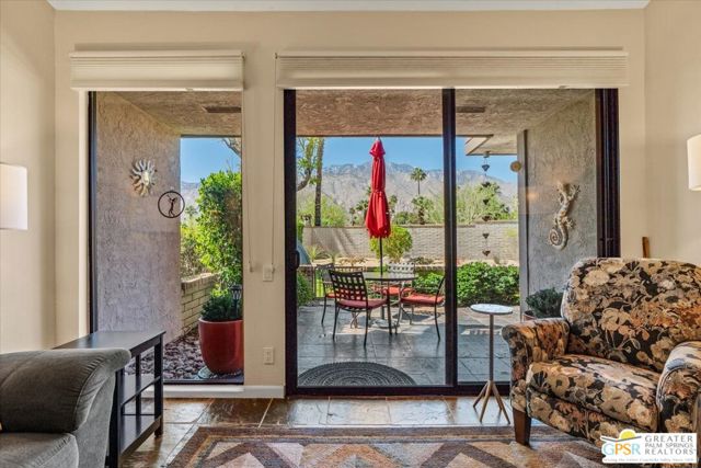 Welcome to this fully furnished 2-bedroom, 2-bathroom condo in the sought-after Sunrise Racquet Club. Located in the heart of Palm Springs, this home offers stunning mountain views, two private patios, and easy access to downtown Palm Springs and the PSP airport. The condo has been beautifully updated with stylish finishes, including slate floors and stainless steel appliances, and is being offered turnkey furnished. Enjoy resort-style amenities, including six pools, six spas, tennis courts, pickleball courts, a clubhouse, and more. A private garage and in-unit laundry add to the convenience of this home. This condo is a tennis lover's dream, just steps away from racquet courts, It's move-in ready just bring your racquet and toothbrush!