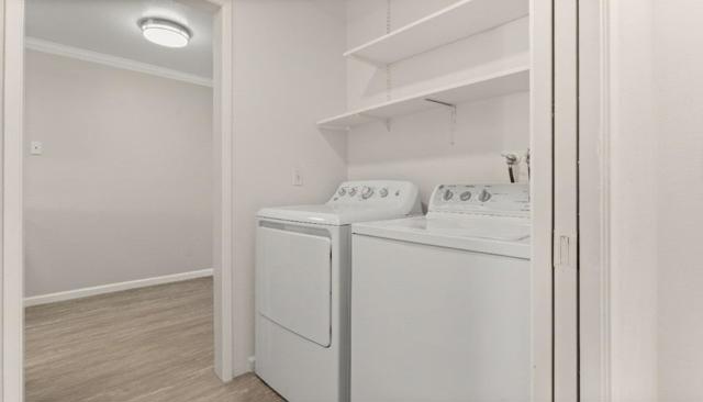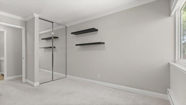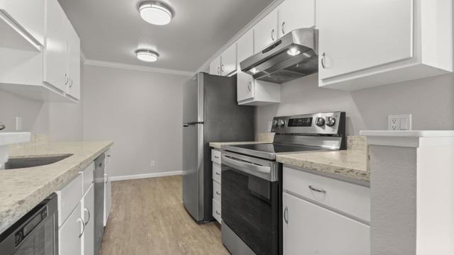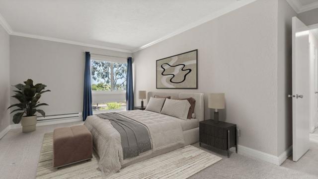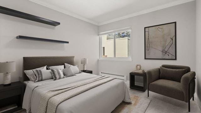 Experience the pinnacle of top-floor living with this fully updated 2-bedroom, 2-bathroom unit in Foster City. The modern kitchen boasts quartz countertops, stainless steel appliances, and a wine cooler. Enhanced with crown molding and recessed lighting, the expansive living room seamlessly connects to a sunny dining room that opens onto a private balcony. The home features updated bathrooms and a spacious primary suite with a walk-in closet. Additional amenities include an in-unit washer and dryer, a breakfast nook, one assigned parking spot, private inside storage room and ample guest parking. Residents enjoy a lifestyle of leisure with community amenities such as a pool, spa, waterfront clubhouse, and access to paddle boarding and kayaking. With nearby trails for walking or biking along the Bay, as well as proximity to top rated schools, parks, shopping centers, and dining options, this home embodies the best of Foster City living.