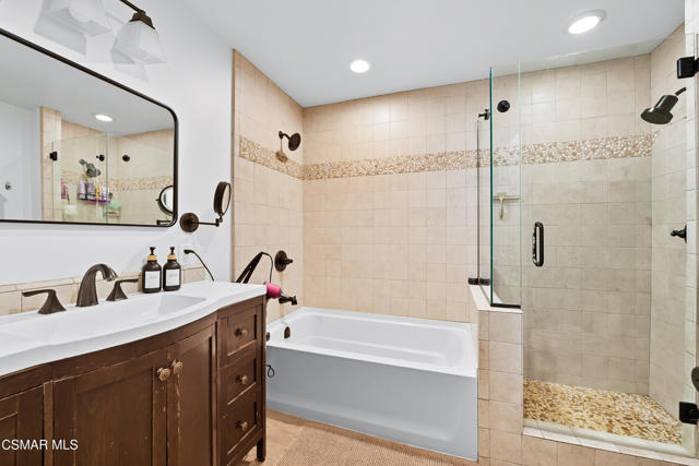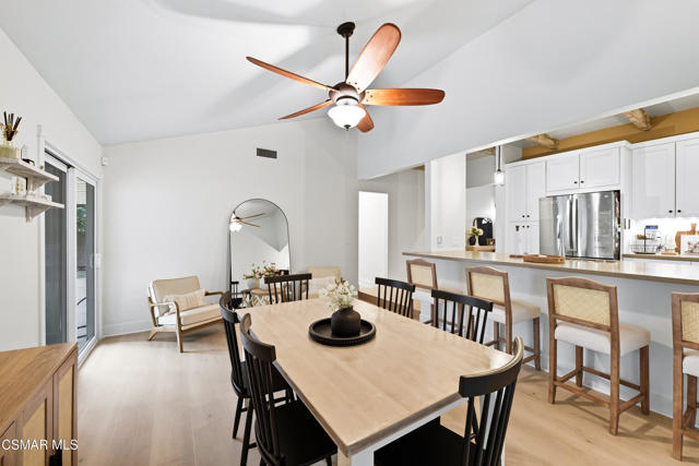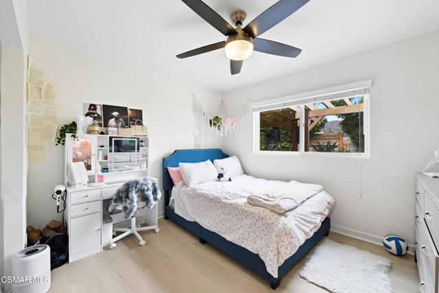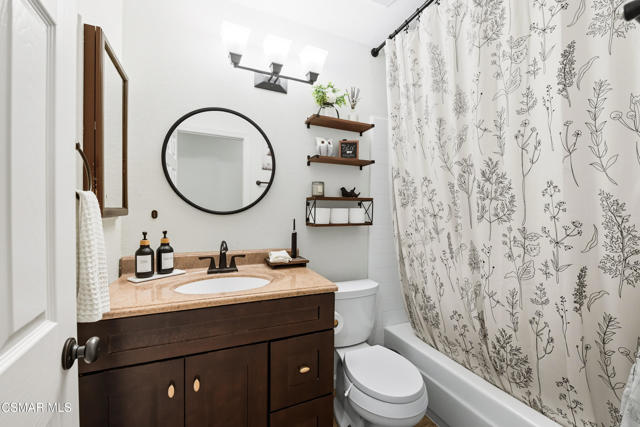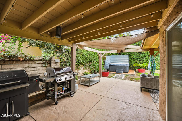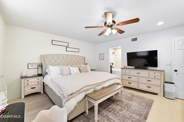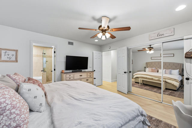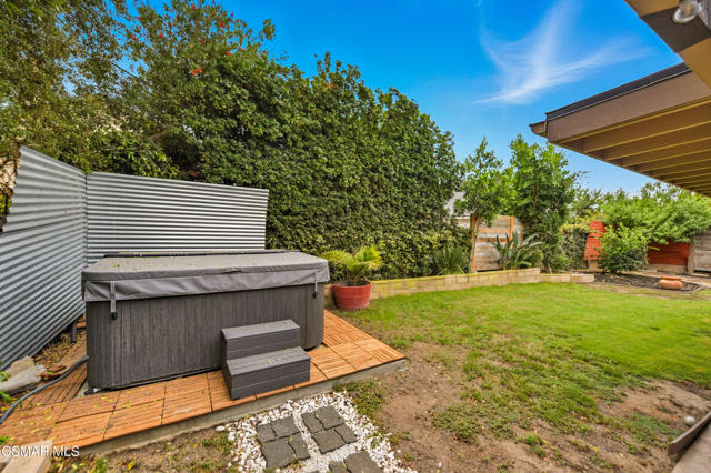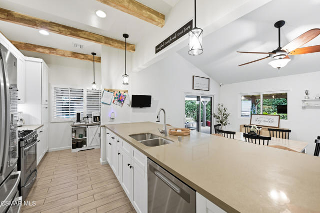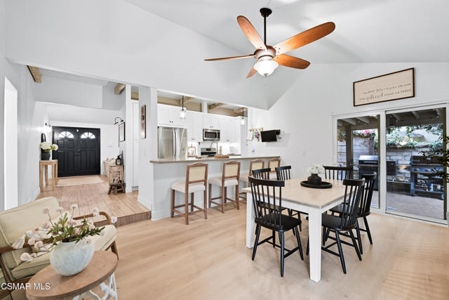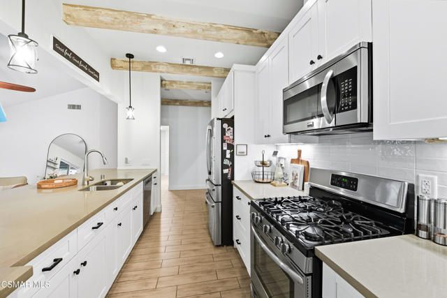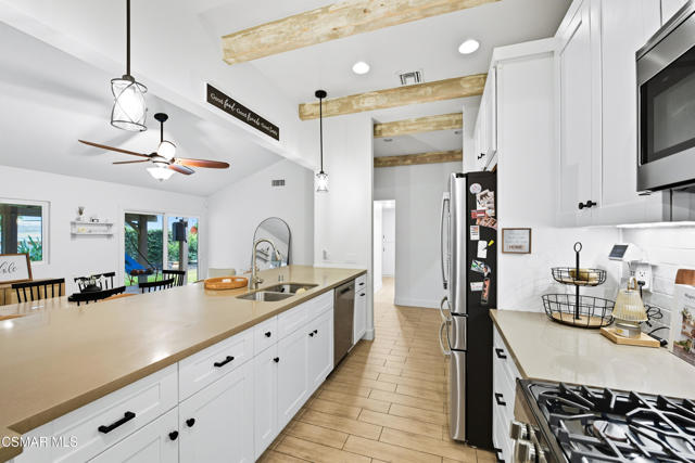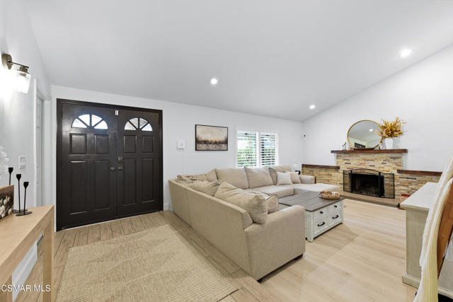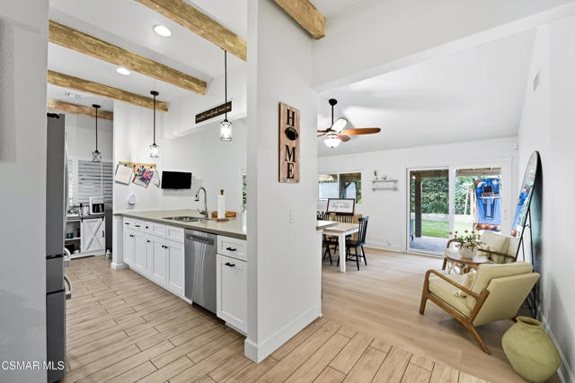 Welcome to this beautifully remodeled single-story home in a very desirable East Simi Valley neighborhood. Featuring 3 bedrooms and 2 bathrooms, this residence offers approximately 1,430 sq ft of living space on a 6,500 sq ft lot. Step inside to an open floor plan with wide-plank wood like floors and dual-pane windows. The spacious living room includes a stone fireplace and recessed lighting, perfect for both relaxing and entertaining. The upgraded kitchen is complete with shaker cabinetry and modern finishes, flowing seamlessly into the dining and living areas. The primary suite offers dual closets, one being a walk-in, a ceiling fan, and a remodeled en-suite bathroom with tile flooring and a glass-enclosed shower. Two additional bedrooms and a full bath provide ample space for family or guests. Enjoy outdoor living in the private backyard with a covered patio, spa, and plenty of room for gatherings. A large 3-car garage with epoxy floors and direct access adds convenience and storage. Additional features include central heating and air conditioning, and beautifully landscaped front and back yards. Located near award-winning schools, parks, and shopping, this move-in ready home combines modern upgrades with everyday comfort.