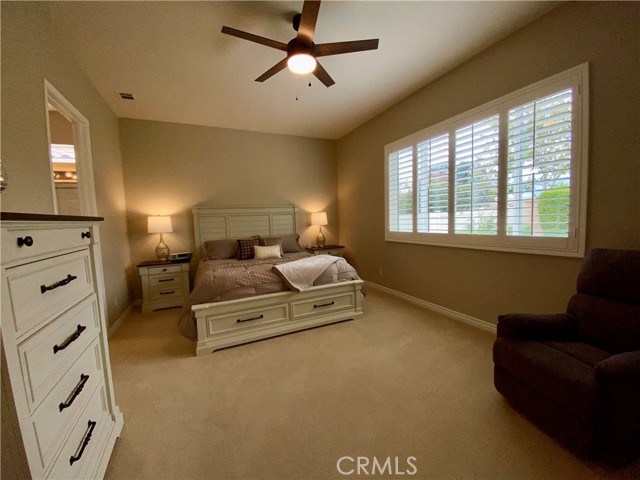 Welcome to this beautifully upgraded Emerald model home, located in the desirable Solera 55+ Active adult community. This move in ready gem offers breathtaking mountain views and a thoughtfully designed open floor plan perfect for both everyday living and entertaining. Freshly painted interior and exterior, updated cabinets and quartz counter tops throughout. Newer stainless steel appliances, including a double oven, gas range and Bosch dishwasher. Spacious kitchen with abundant cabinets and pantry. Large indoor laundry room with washer and dryer included.Two expansive primary suites, with updated bathrooms and walk in closets. Bonus room ideal for a home office or craft space. Newer ceiling fans, plantation shutters, and oversized baseboards throughout. Neutral color palette to suit any decor. Updated half bath in hallway. Covered patio perfect for outdoor dining and entertaining. Attached garage with 2 car parking plus golf cart space. Garage has built in shelving, cabinets, and overhead storage. Newer insulated garage doors. Enjoy the Best of Solera with resort style amenities and a affordable HOA that includes spectrum internet and T.V., Large swimming pool and spa, Beautiful gym, pool tables, tennis Courts and pickleball courts, Bocce ball and more! All this plus Security of a gated guarded Community! Don't miss out on this exceptional opportunity. Call today for your private showing!