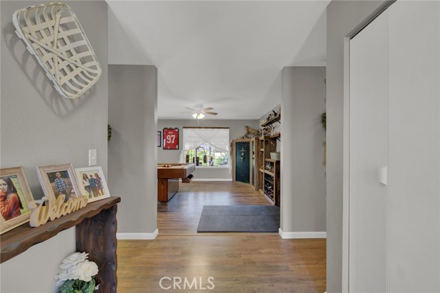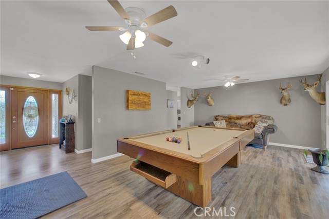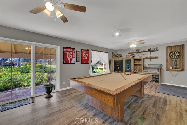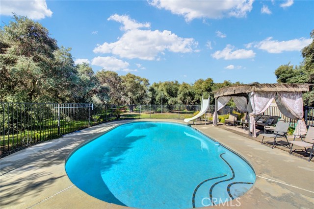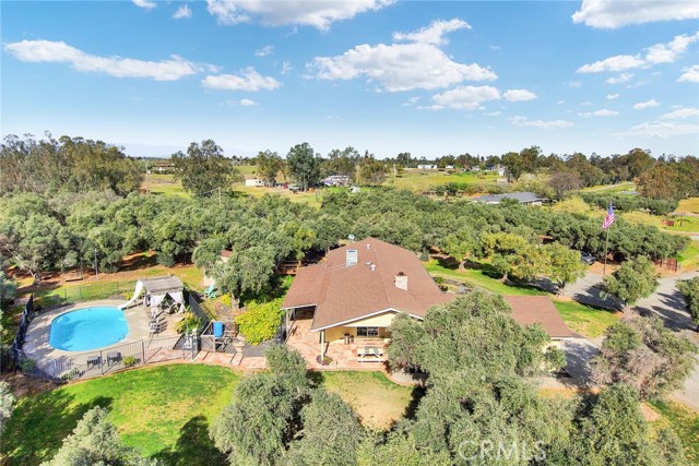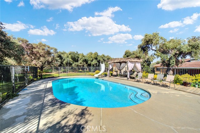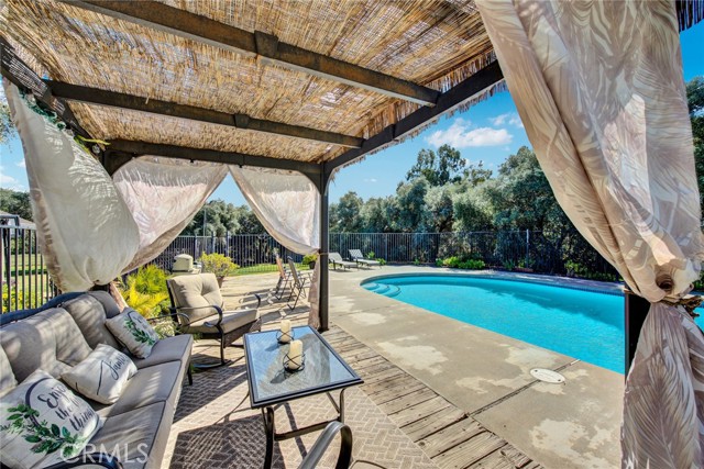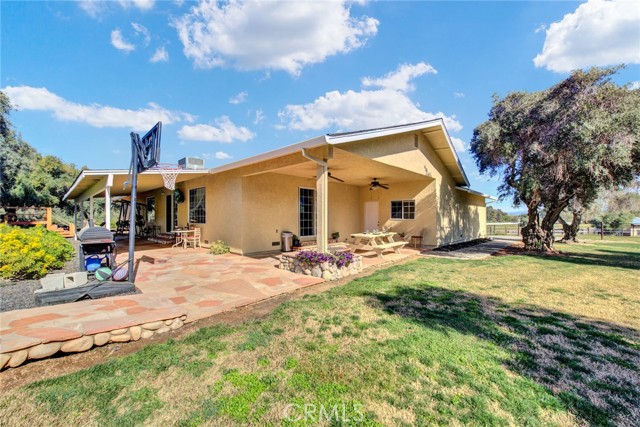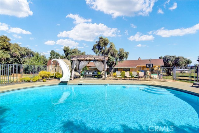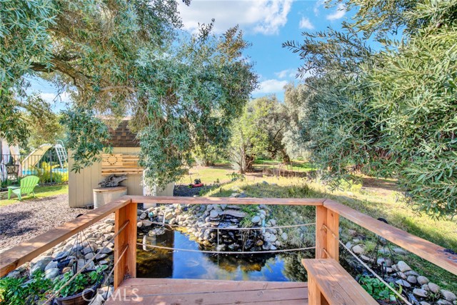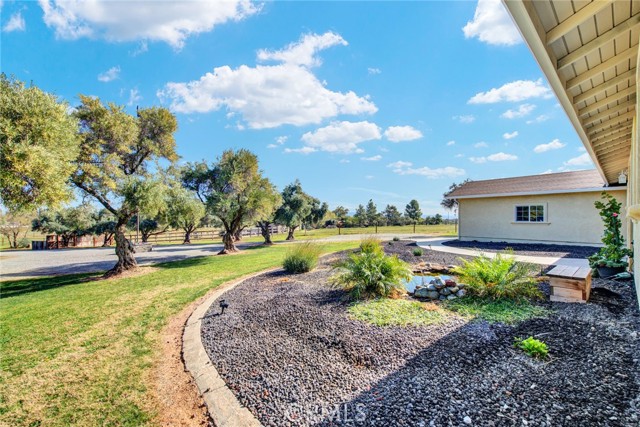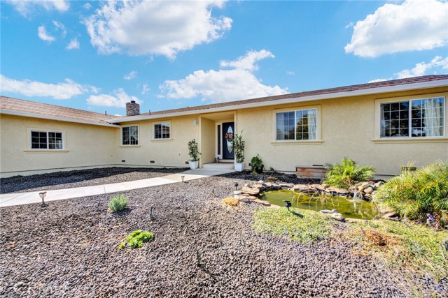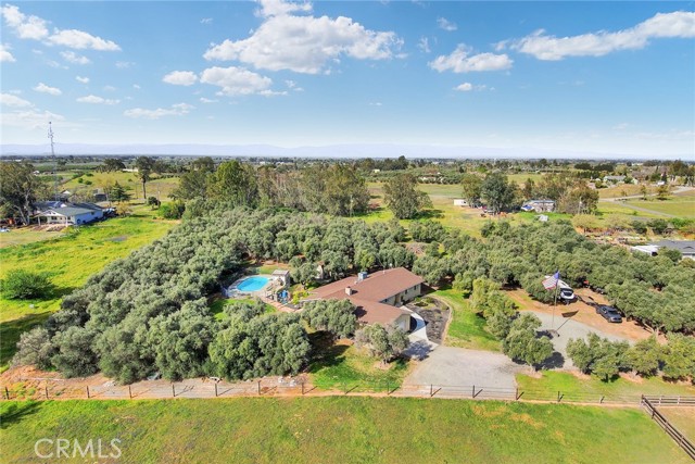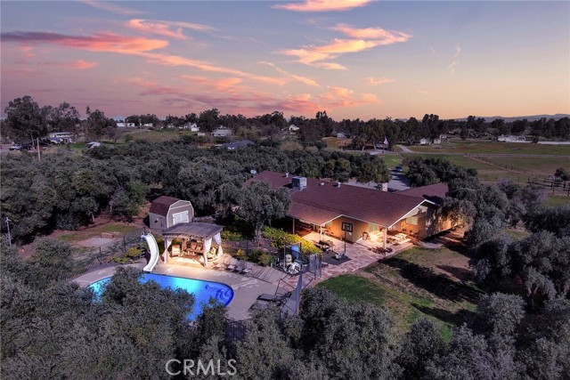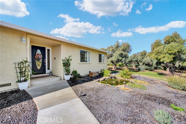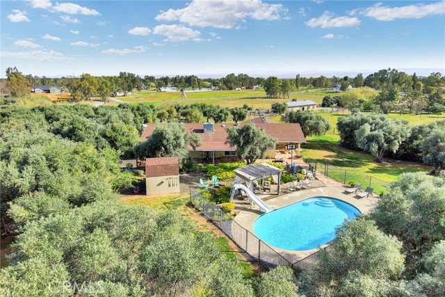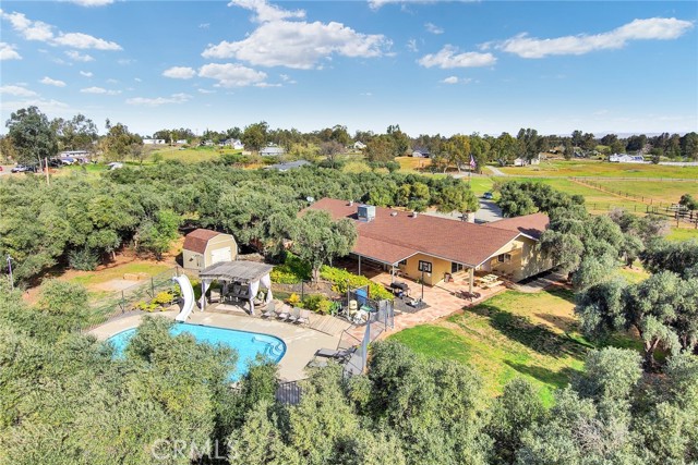 Welcome to 23671 Carona Avenue – an entertainer’s dream nestled on 2.5 private acres surrounded by mature olive trees. From the moment you arrive, this property is designed to impress. A private driveway leads to your two-car garage, while guests are greeted with a circular drive featuring a striking flagpole set in stone. As you walk to the front door, you’ll notice one of two serene koi ponds. Step inside to a freshly updated interior, styled in warm farmhouse tones that create a welcoming atmosphere. Down the hall are two bedrooms, perfect for family or guests, while the spacious primary suite offers a private bath with dual sinks and a walk-in shower. The bright kitchen, with a window over the sink overlooking the yard, flows into a cozy living room where you can relax by the wood-burning fireplace. A large game room, complete with pool table, dart board, and built-in safes, provides endless opportunities for fun. Sliding doors open to a huge covered patio that wraps around the home—ideal for outdoor gatherings. Beat the heat with ceiling fans in the shaded patio, or take the slide into the sparkling in-ground pool. The backyard is built for entertainment, offering horseshoe pits, mini-golf, a fire pit, batting cage net, archery range, and more. Beyond the entertaining spaces, the land itself is thoughtfully laid out for long-term enjoyment. Multiple fruit trees—including apple, plum, pomegranate, peach, cherry, orange, lemon, and lime—offer seasonal harvests and add to the charm of the property. This is more than just a house—it’s a lifestyle. Rarely do properties like this come available. Don’t miss your chance to see it in person and discover if it checks all your boxes.
