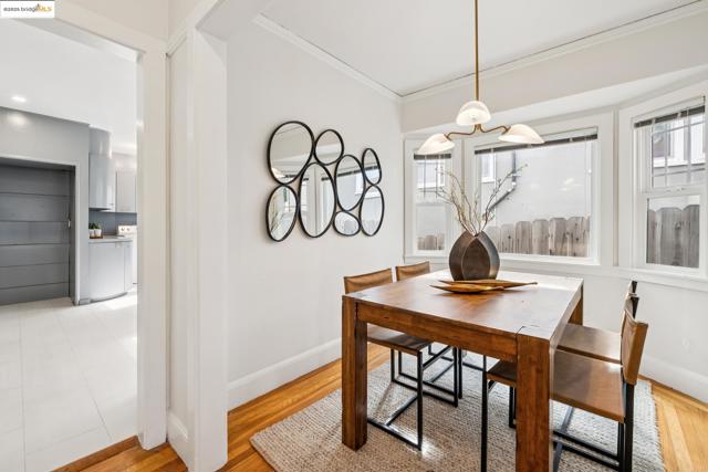 Handsome Maxwell Park Craftsman with many updates throughout. Wonderful floor plan with large formal rooms and charming built ins. Most upstairs room boasts sunny wide vista of the Oakland hillside. Wonderful grand formal rooms and spacious bedrooms. The large kitchen is wonderfully refreshed and comes with new frig, new washer/dryer. Downstairs is the large 4th bedroom, second bathroom, ready made bar/kitchen set up -- it is ideal for a possible in-law or ADU set up. In addition, on the same level, there is also a very spacious work-shop which can be easily expanded for additional living space. Both bathrooms have been updated. Spacious low maintenance landscaped garden & wonderful brick patio. Melrose Leadership Academy - a very sought after TK - 8th Spanish Immersion School is near by.